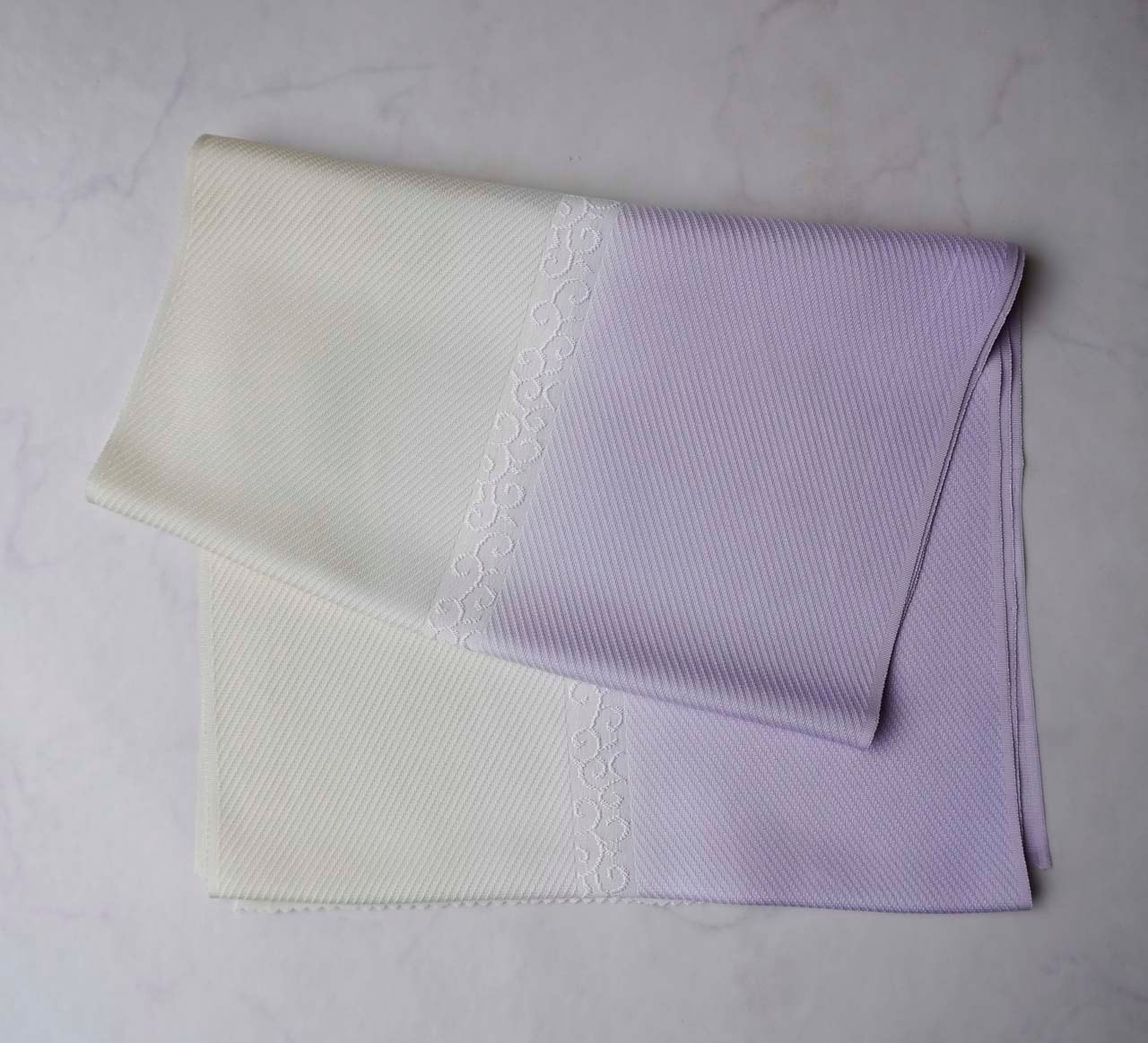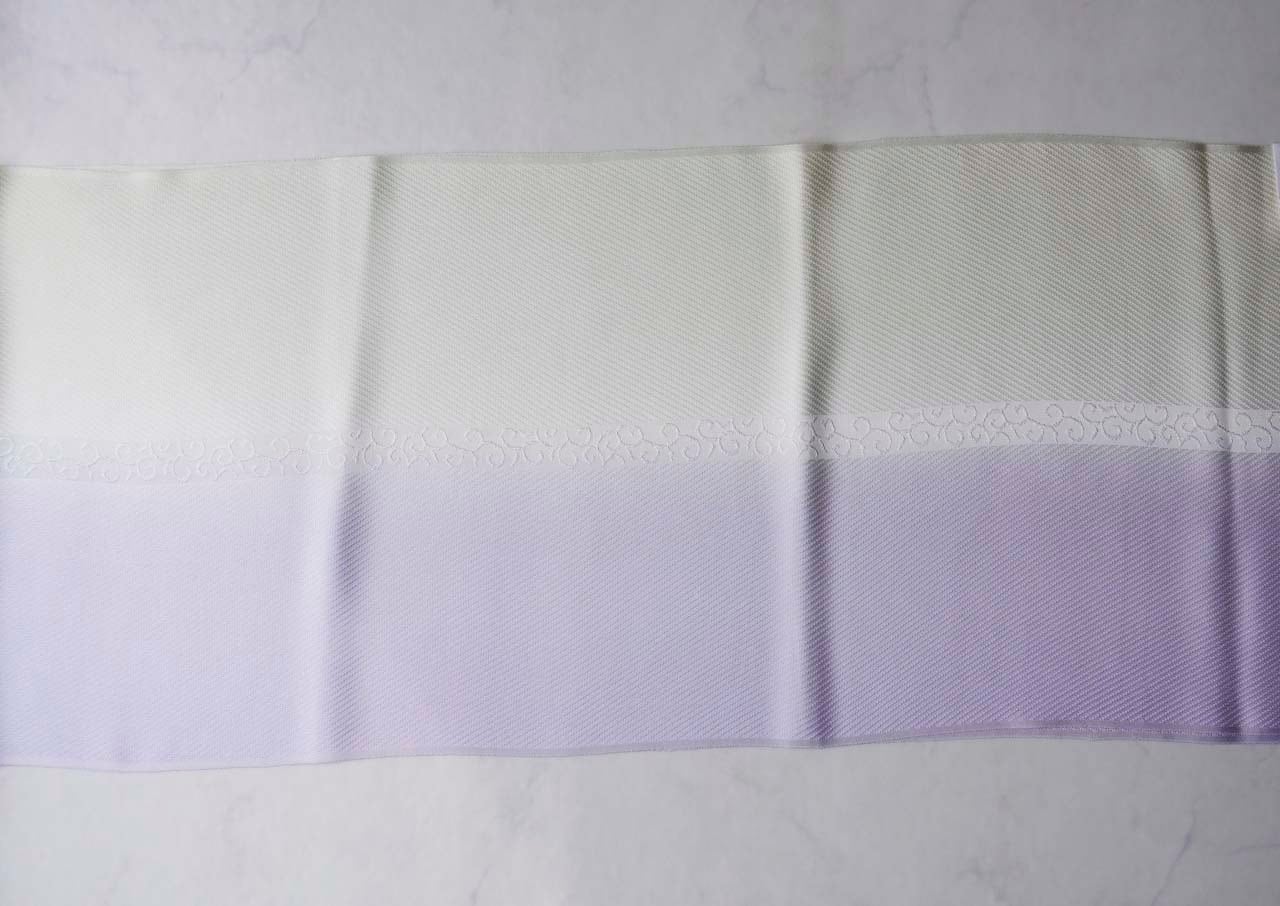 【衿秀・帯揚げ】白藤色 ×女郎花 風通染め分け唐草 帯揚げ 260214⑰
