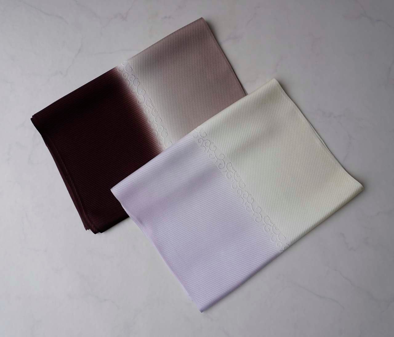 左右で異なる色や柄を配置した贅沢な正絹帯揚げです。