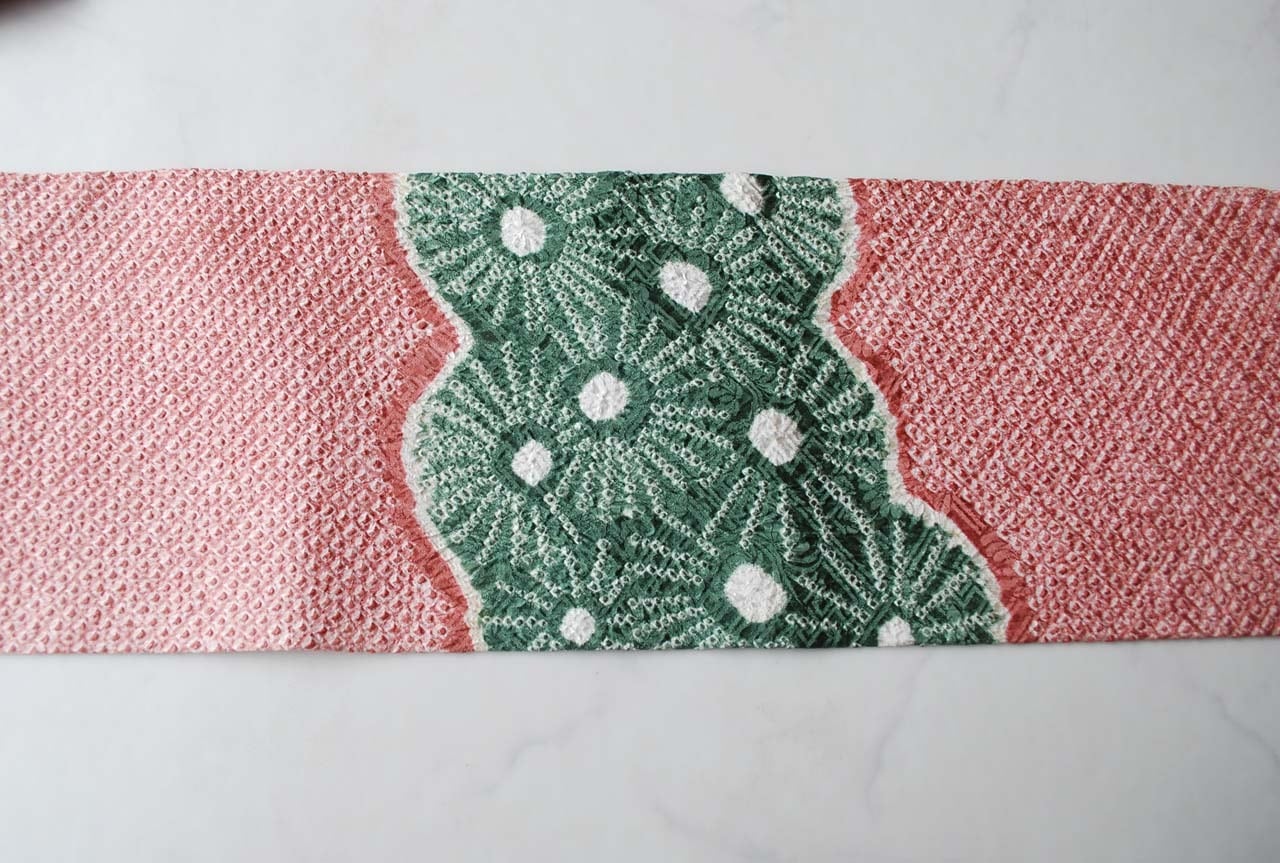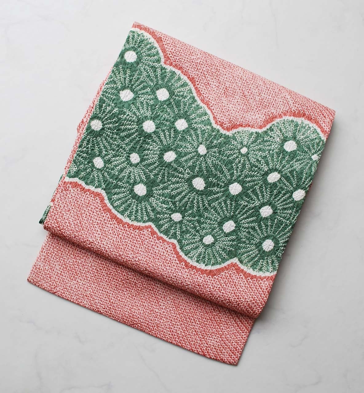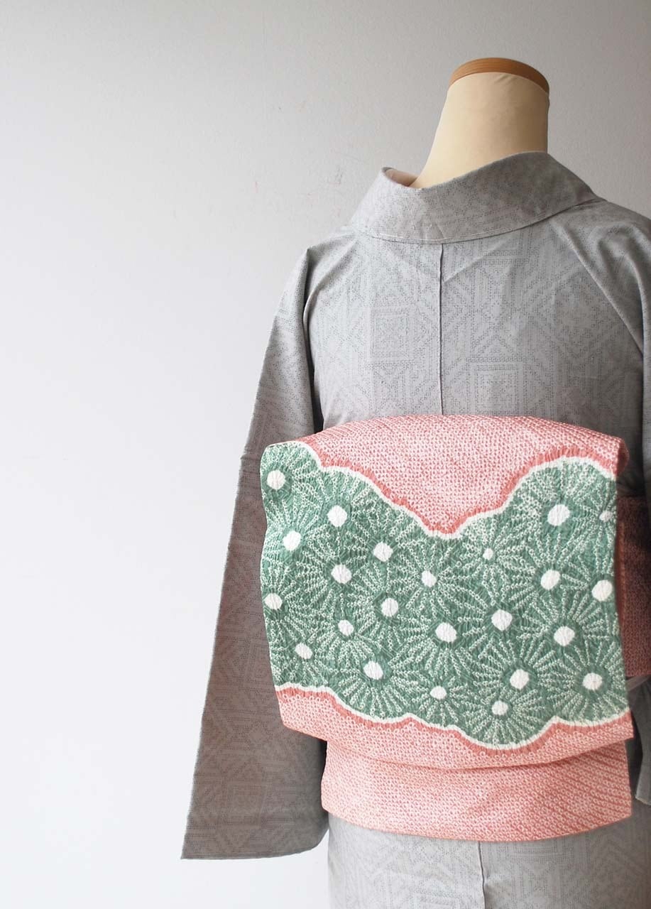 【なごや帯】樺色×木賊色 絞り柄 なごや帯