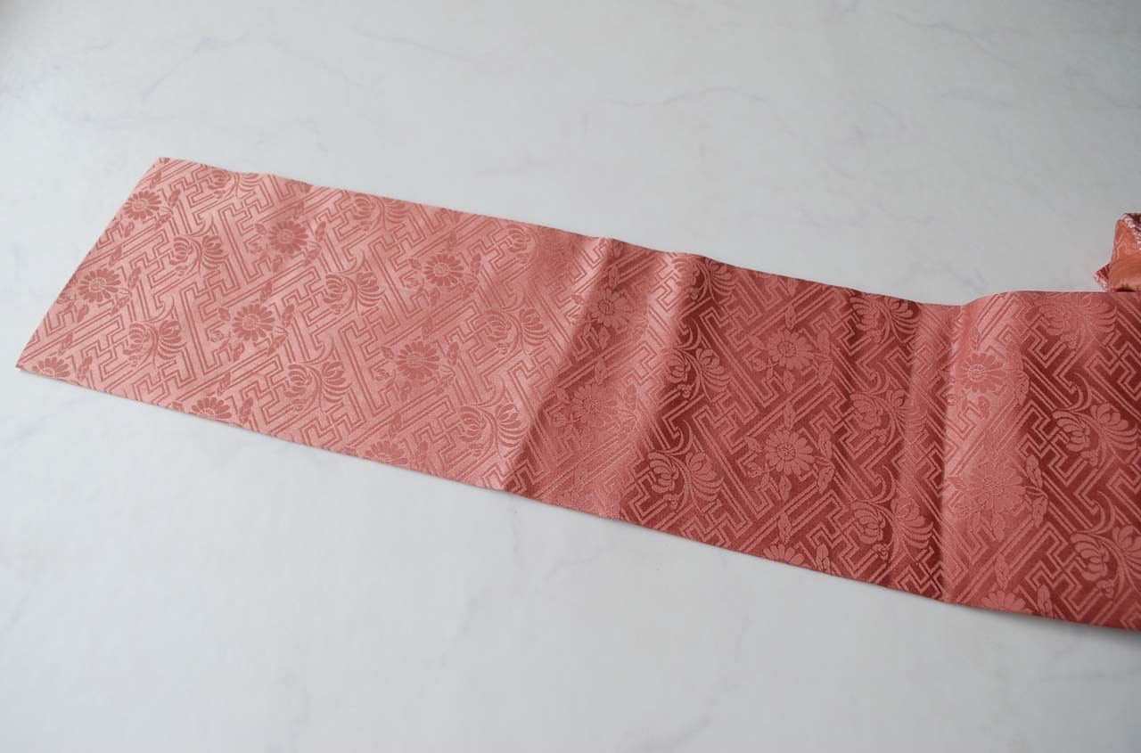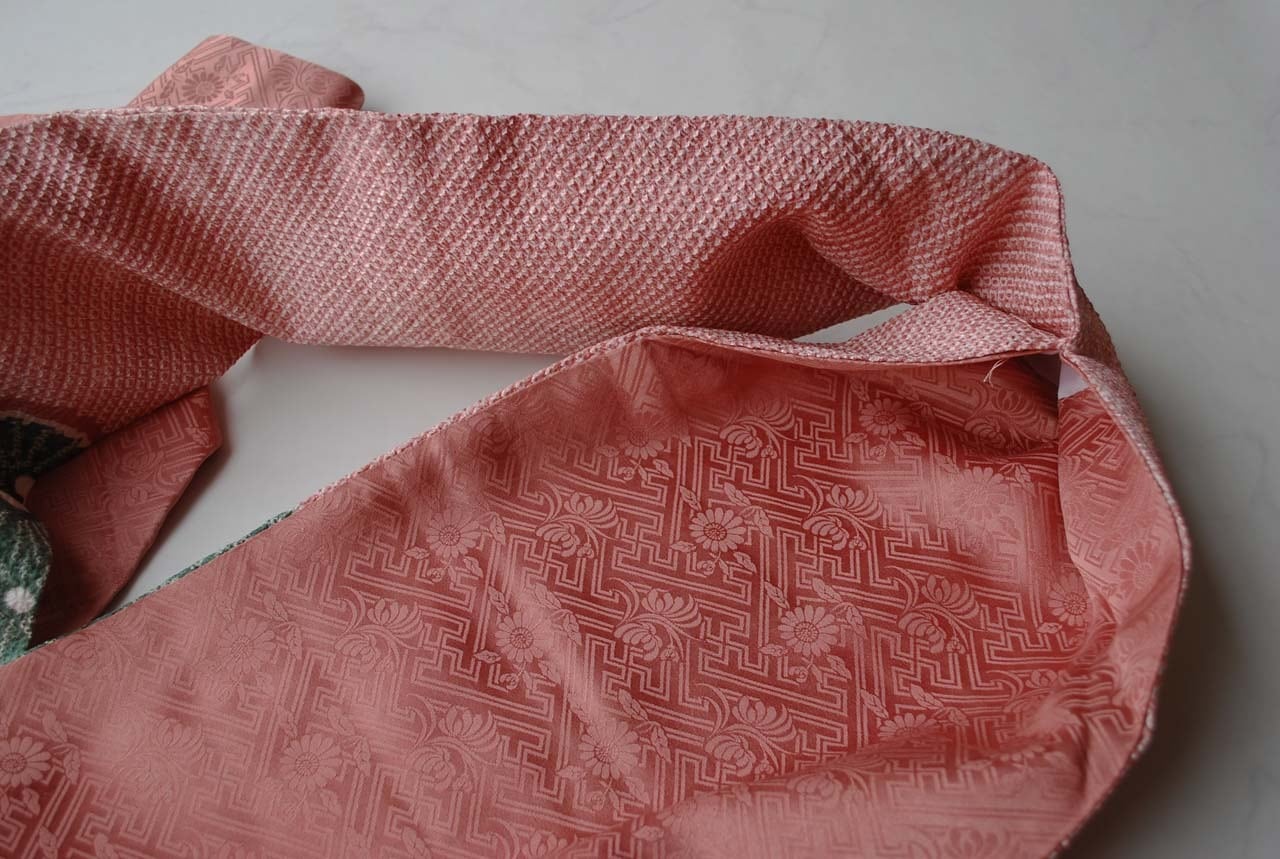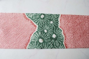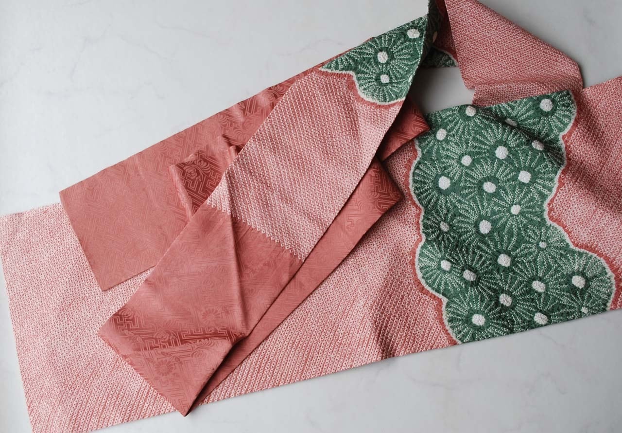 【なごや帯】樺色×木賊色 絞り柄 なごや帯