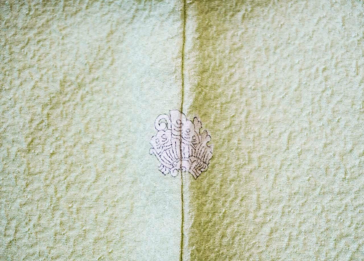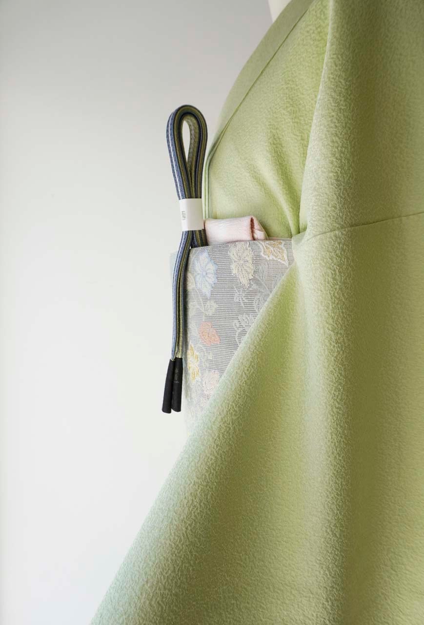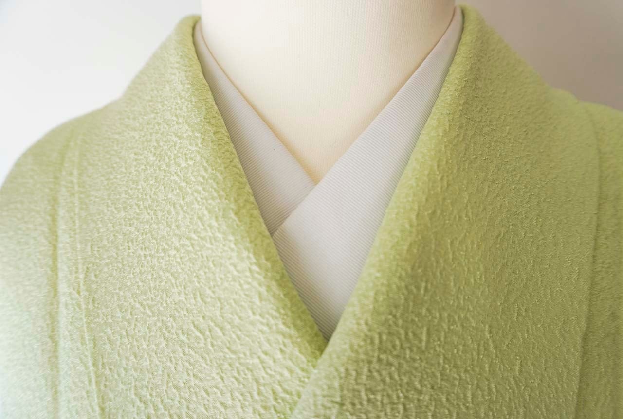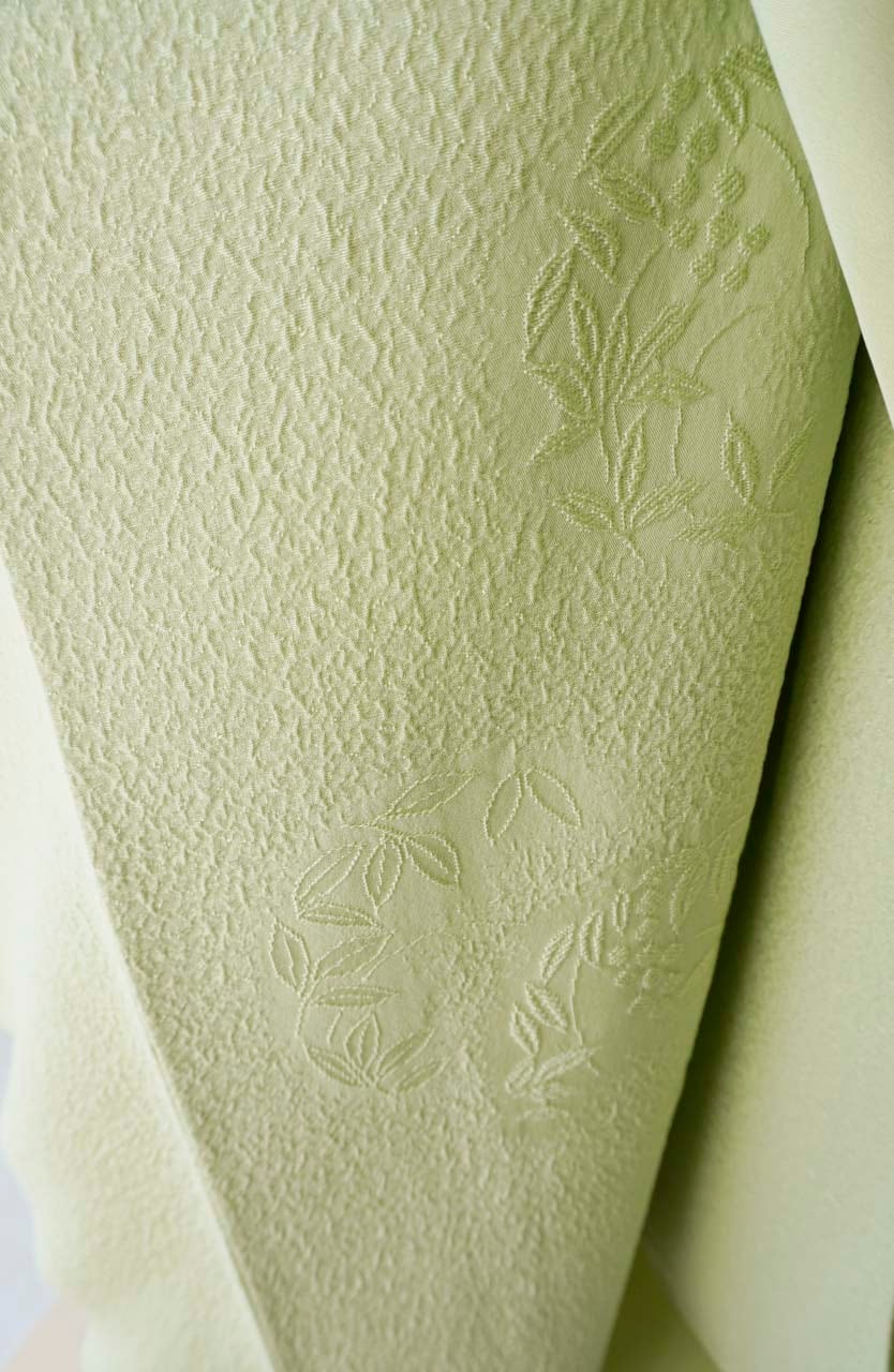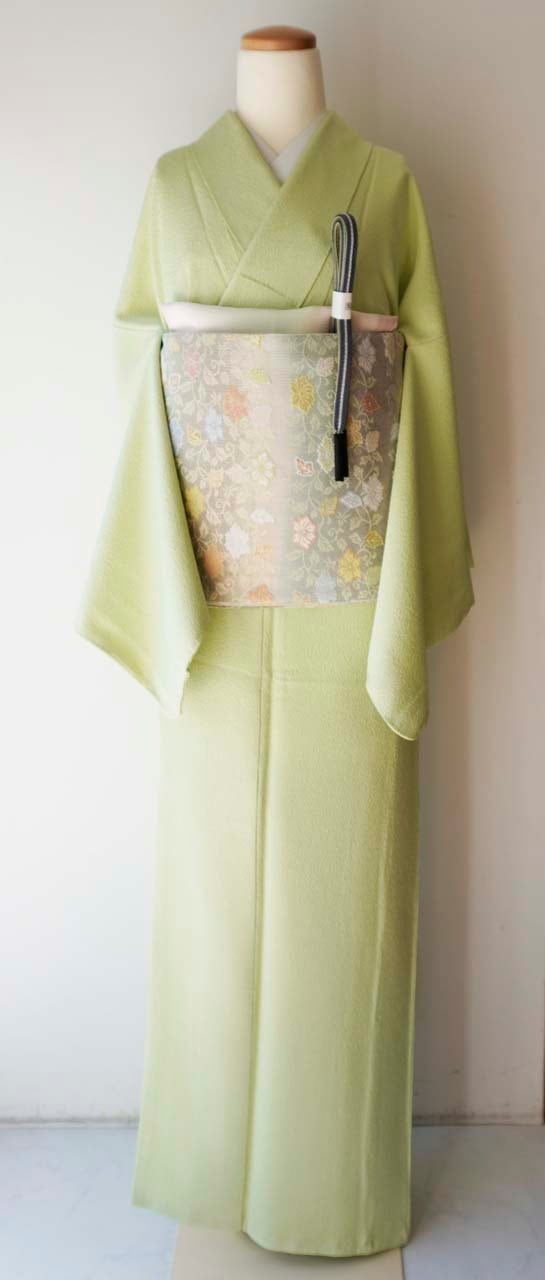 お色、若葉色の色無地です。