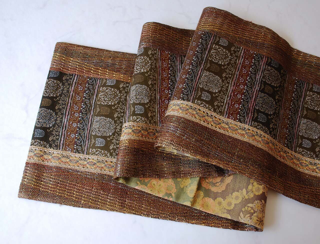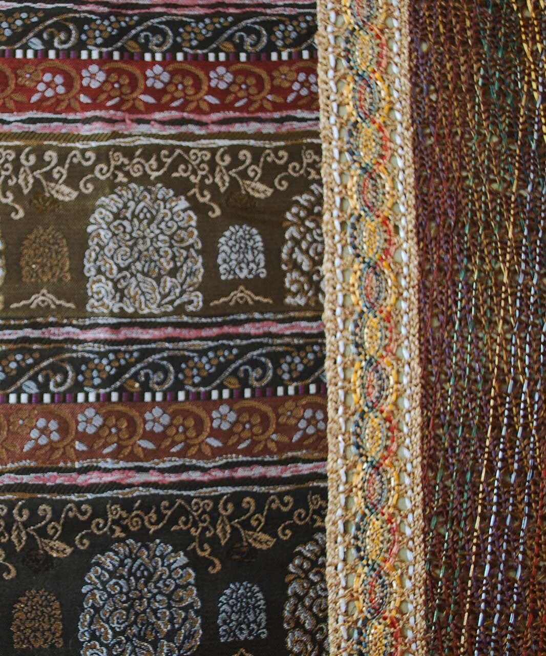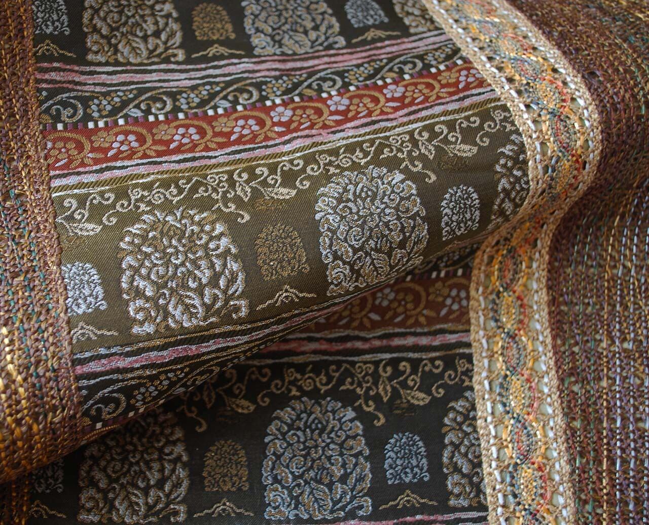 抽象植物文が横段状に織り出され、