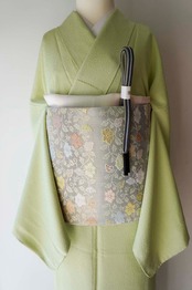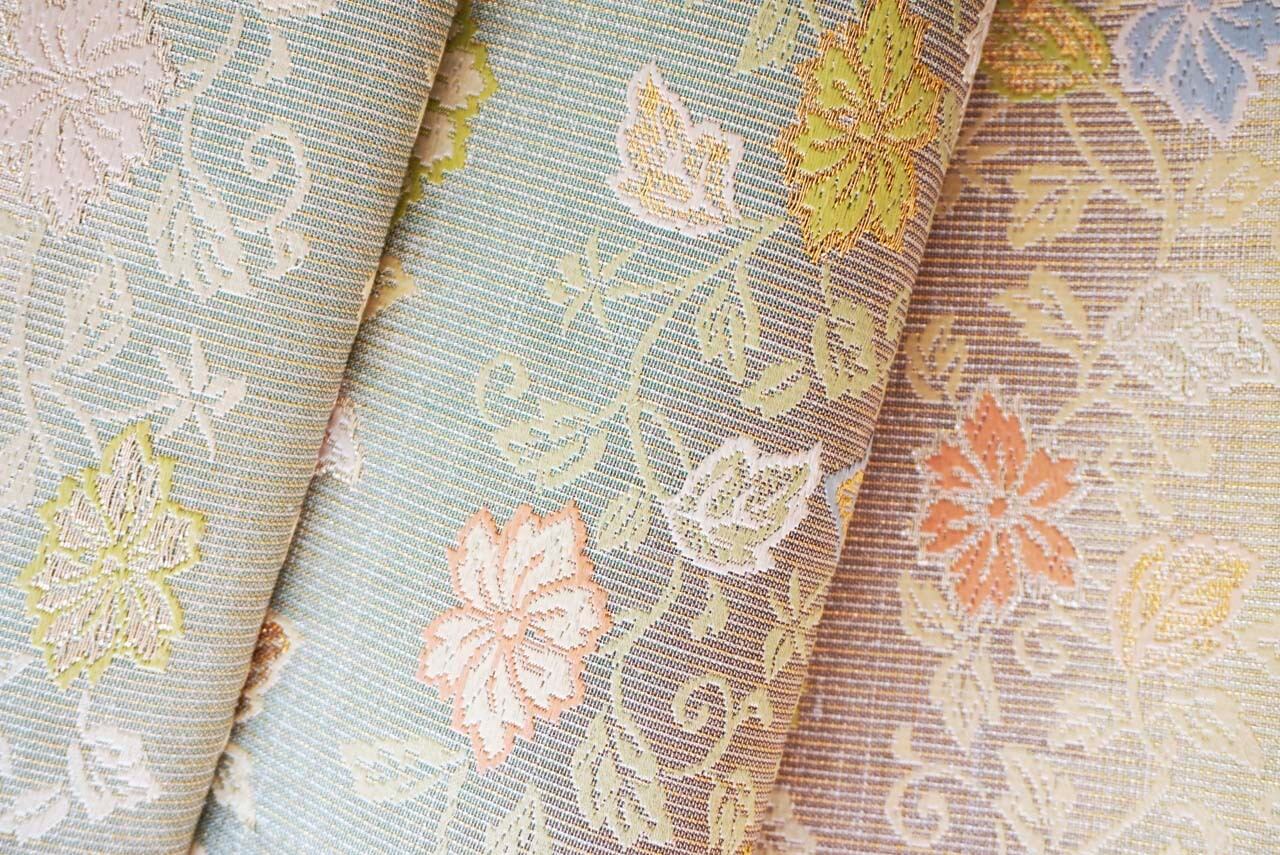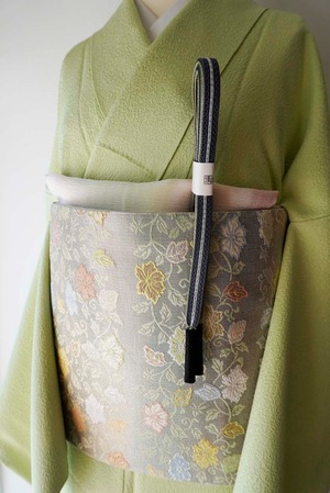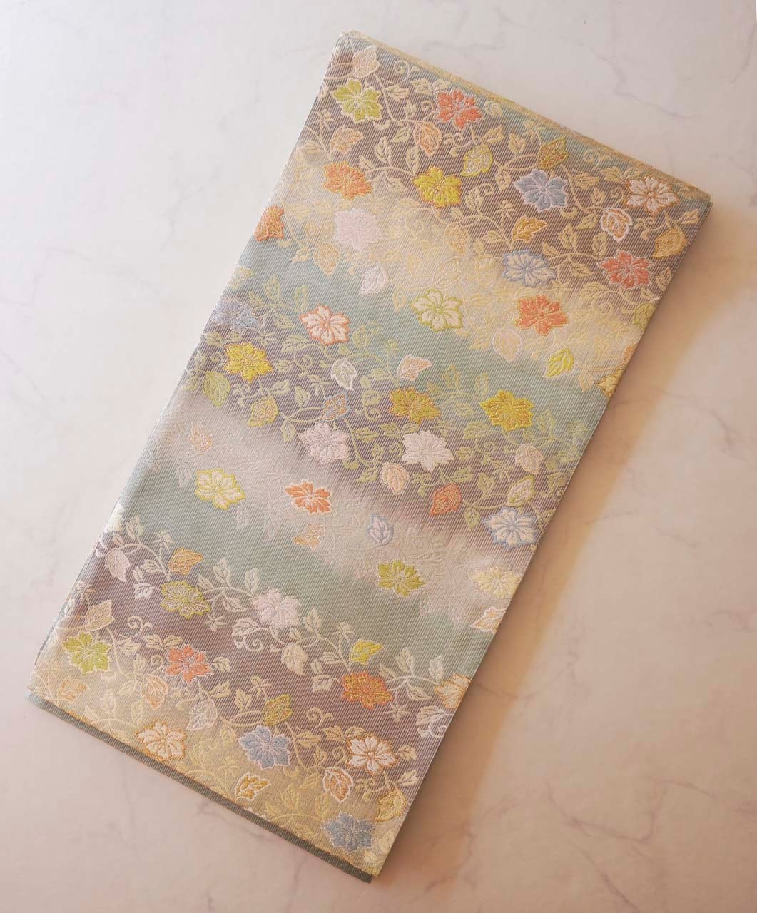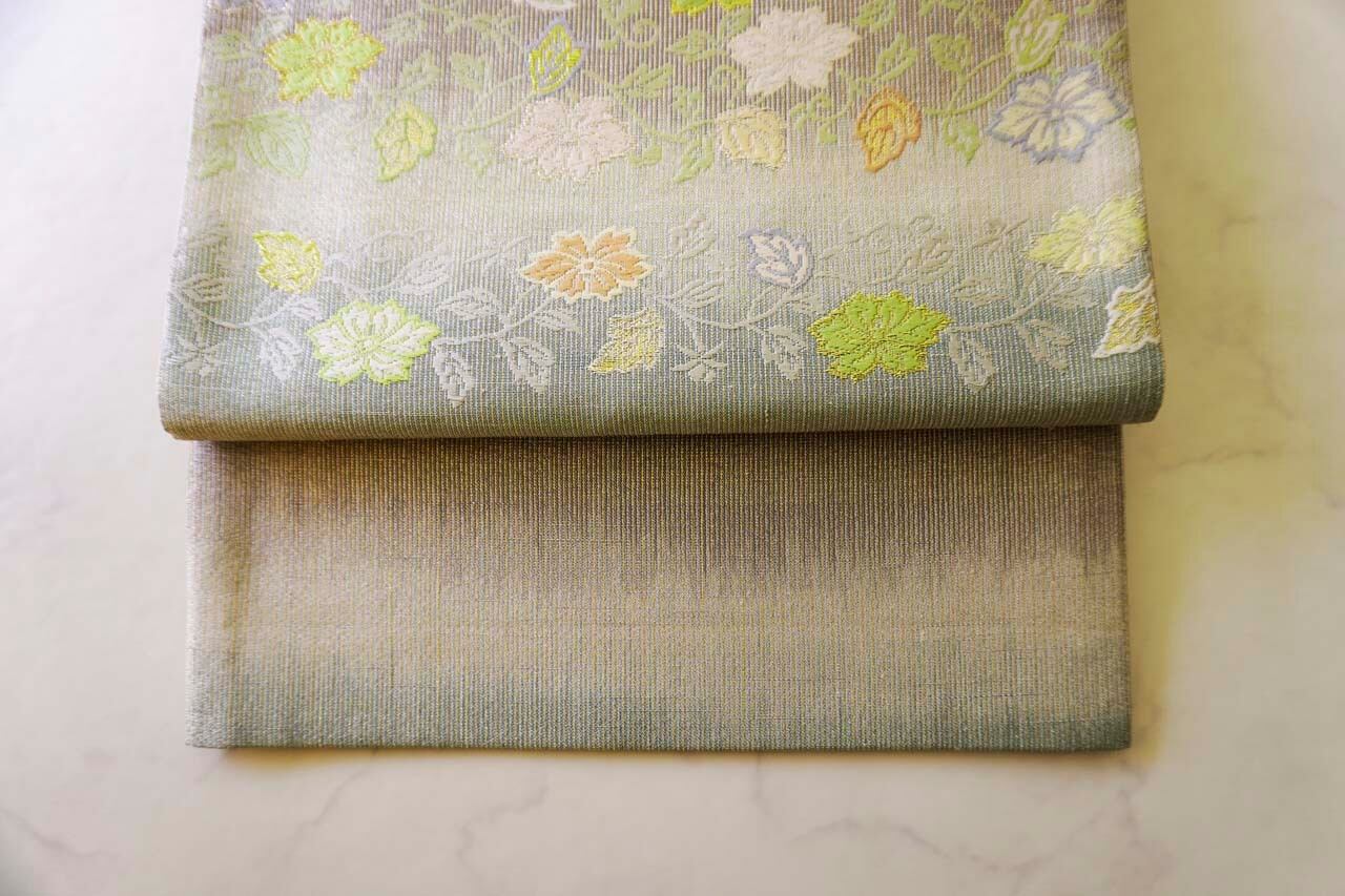 【ふくろ帯】西陣織 青磁色と浅紫色暈し 段華唐草文 芦田克彦 ふくろ帯