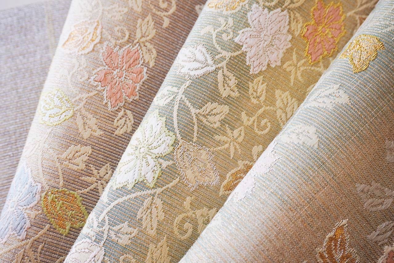 咲き誇る色とりどりの花々が、銀糸・金糸