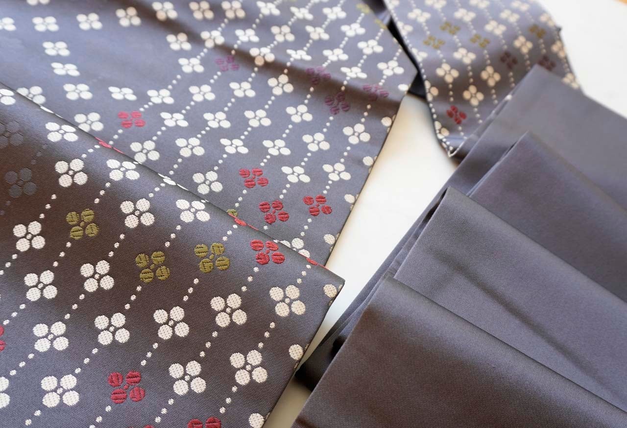 象牙色や蒲葡色、黄橡色、茜色などの小花文様が