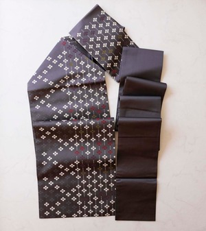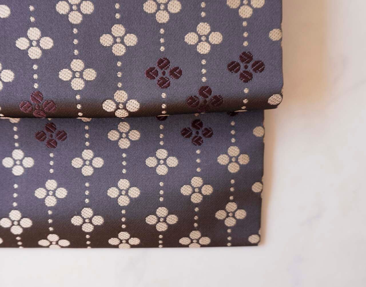 【なごや帯】 藤煤竹×象牙色 小花文 なごや帯