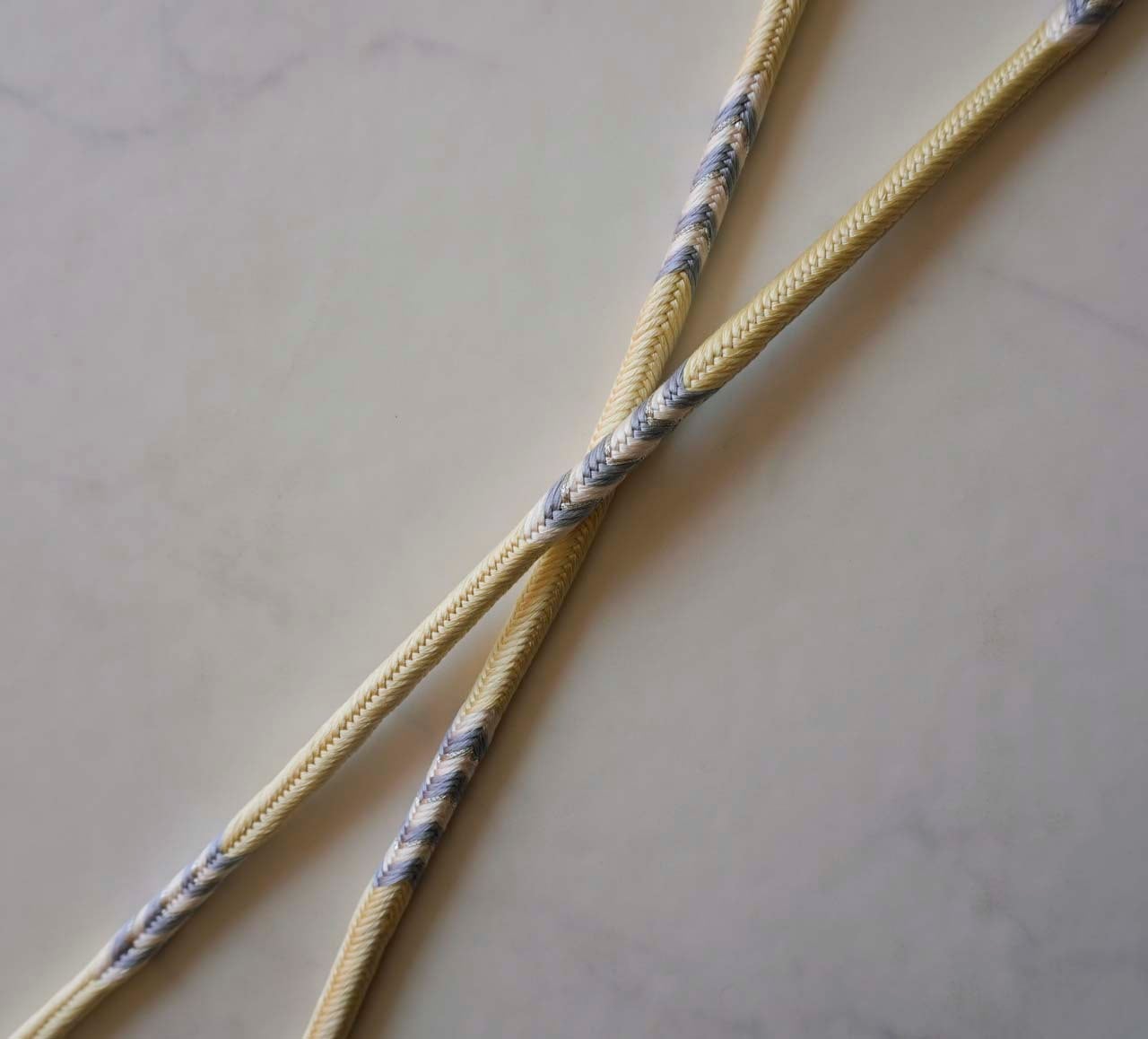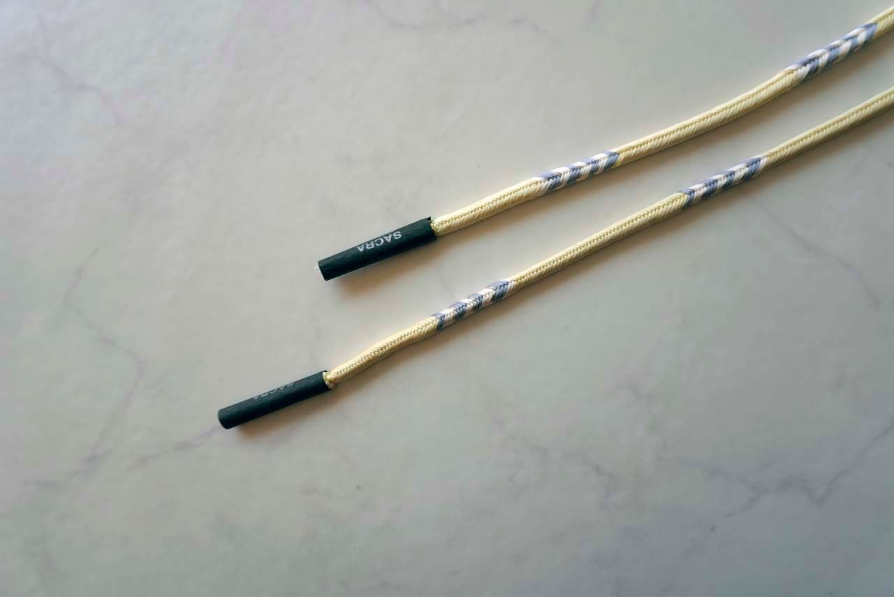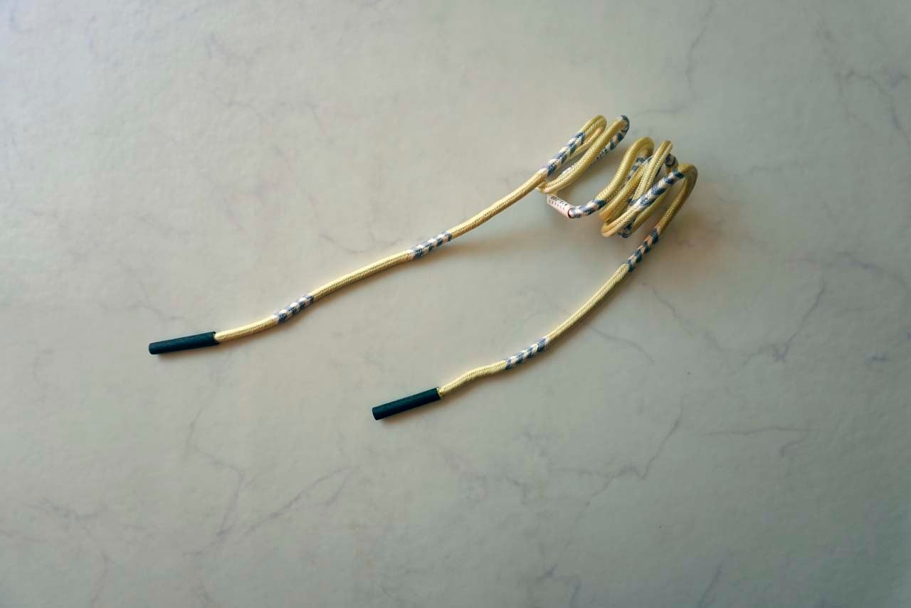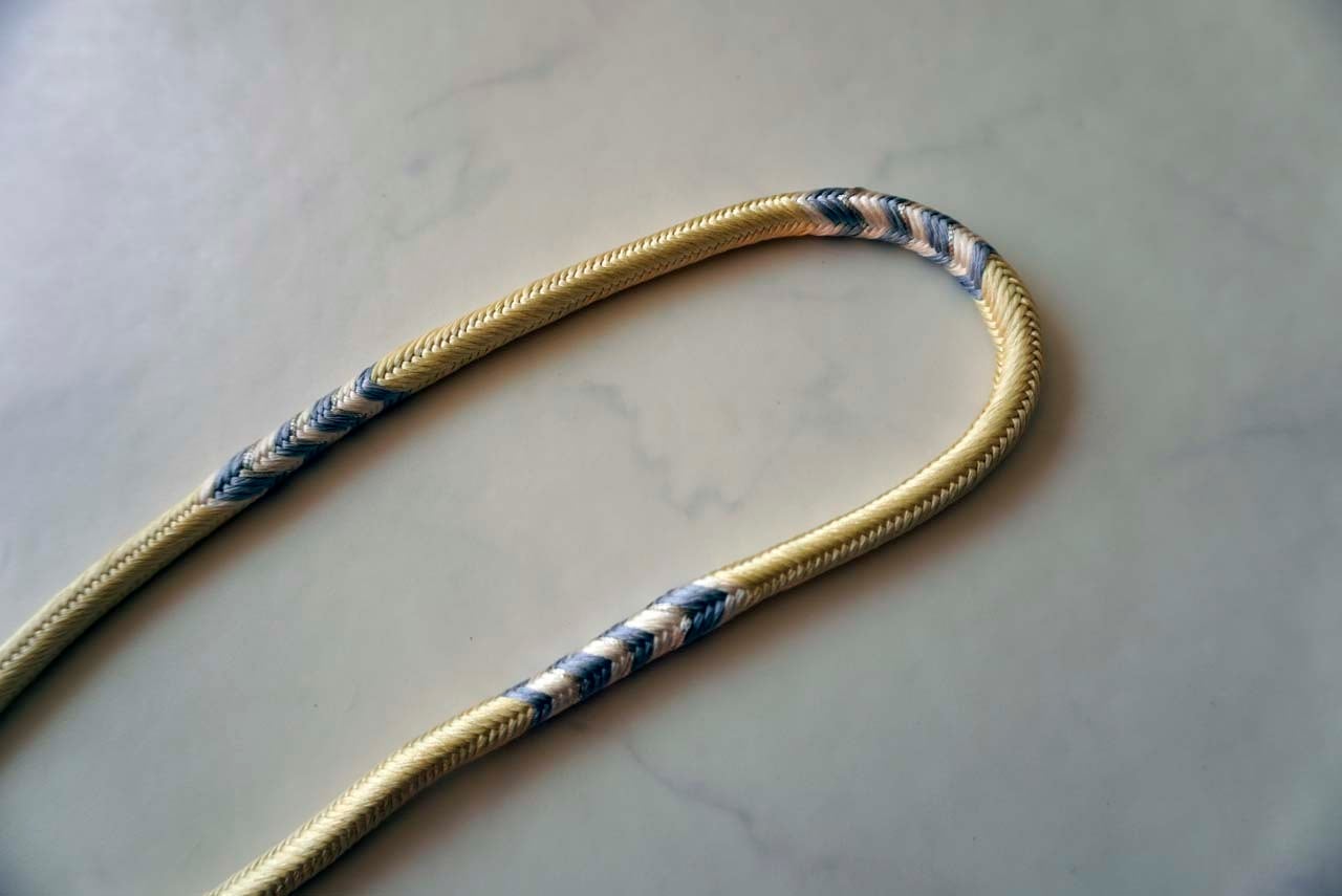 洋角組という丸組の紐のところどころに