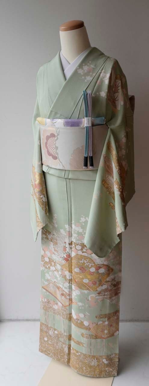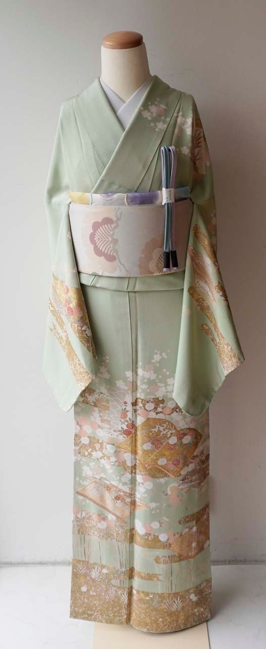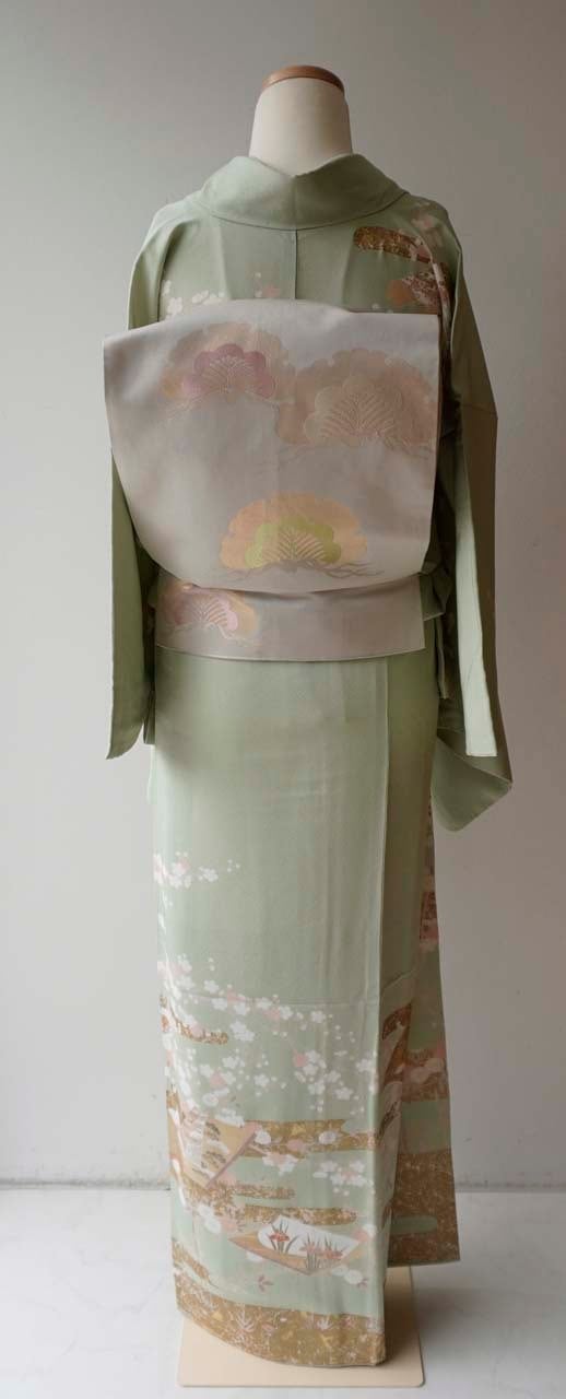淡い黄緑系のお色の地の訪問着です。