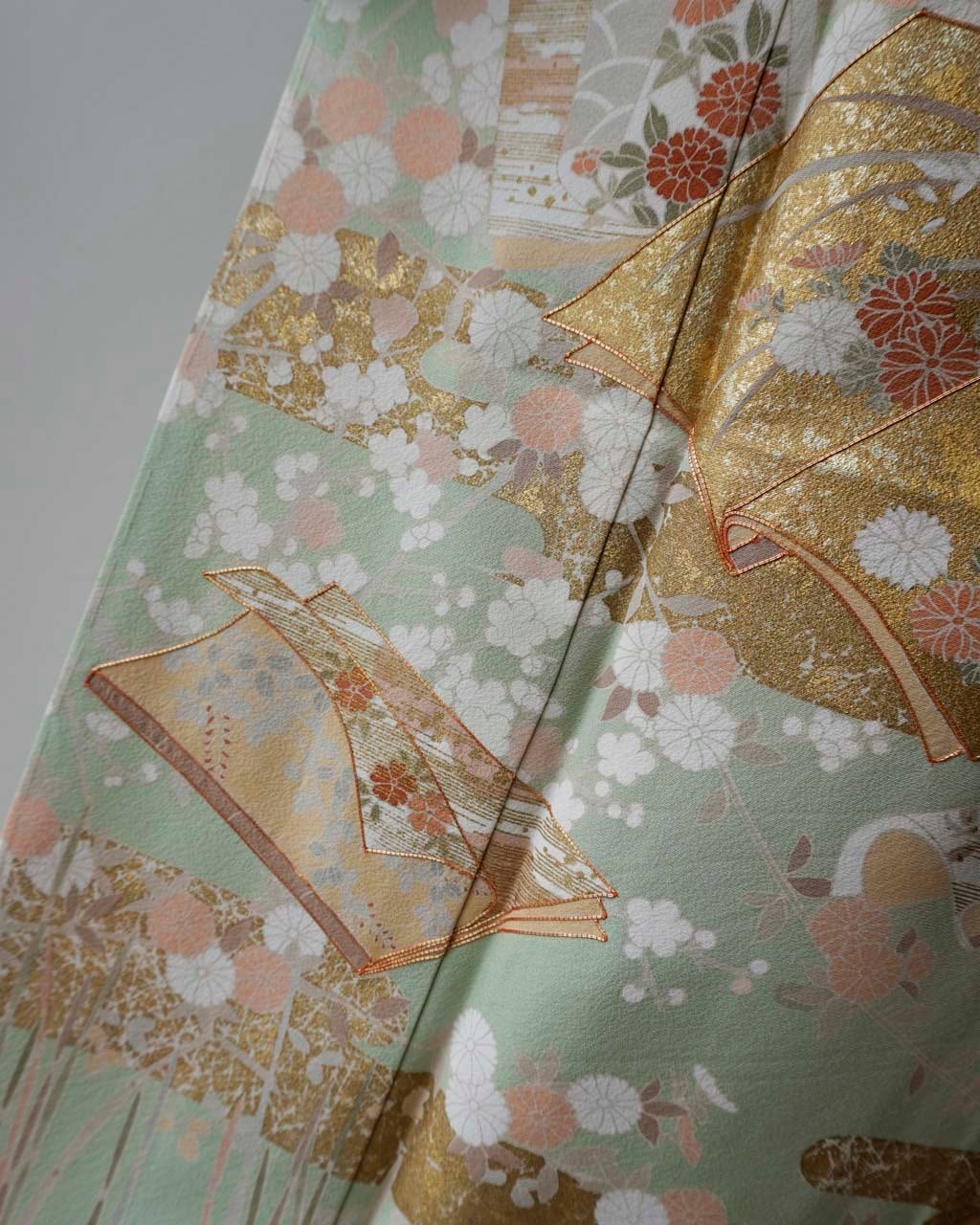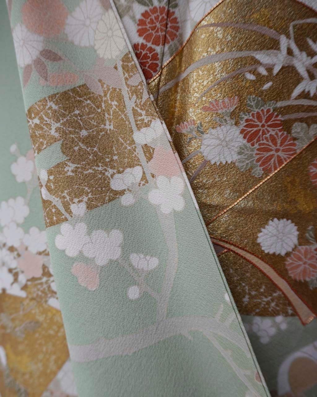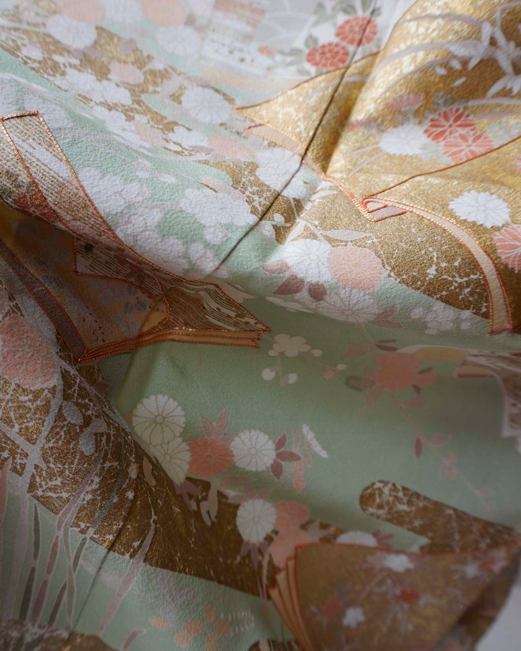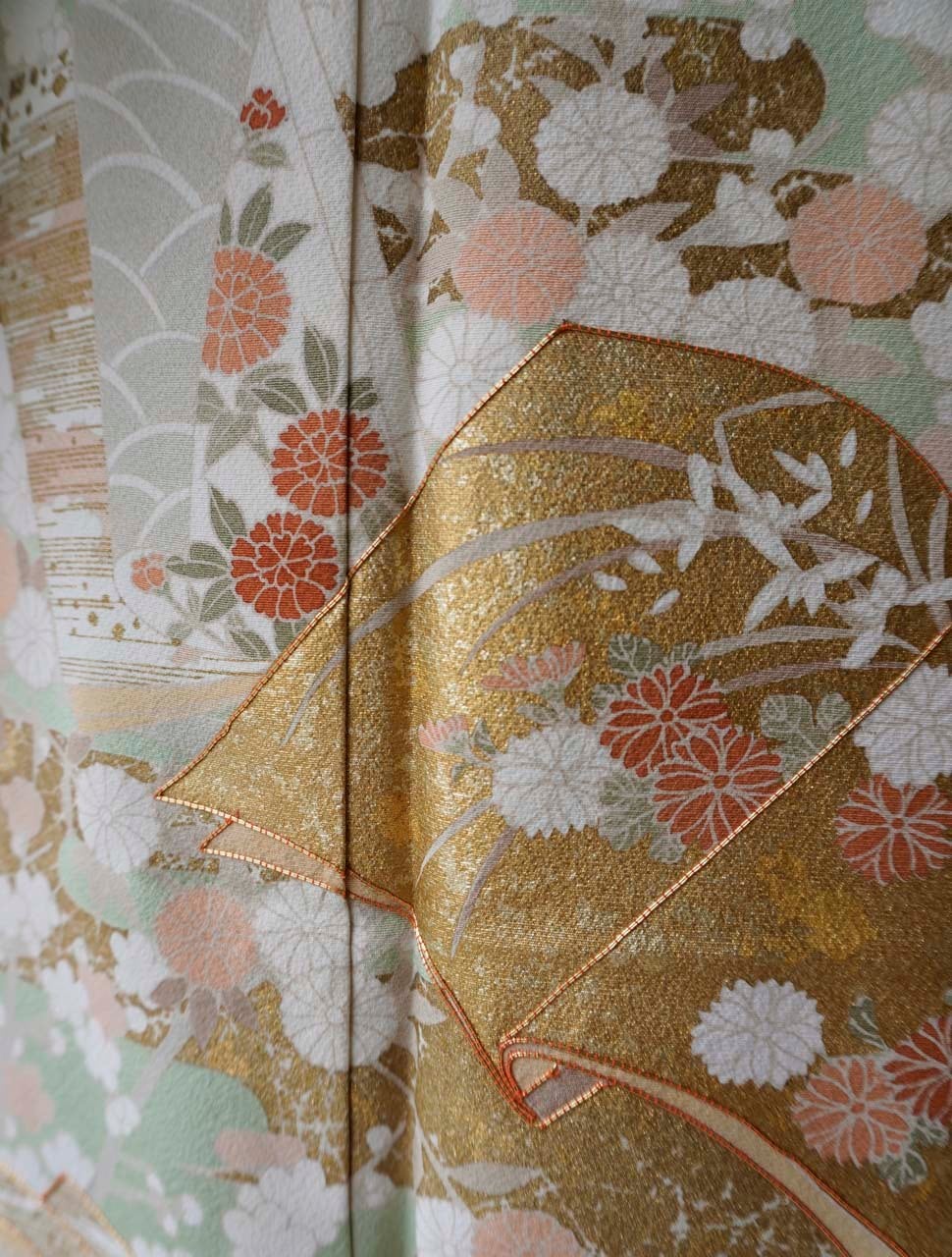 優しい色調で、金彩・金駒刺繍の施された