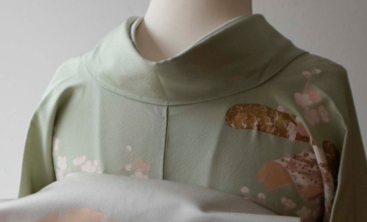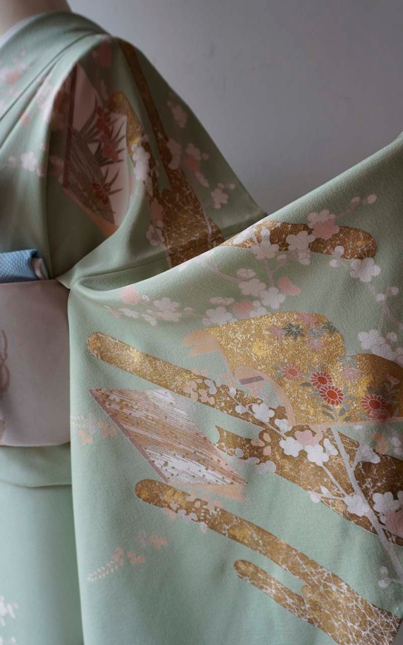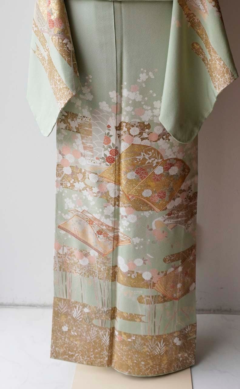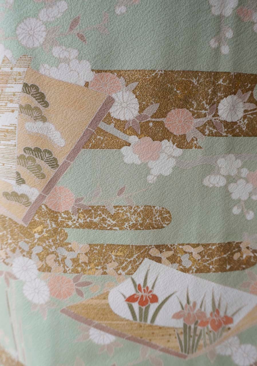 【袷】薄萌葱地 四季の花・エ霞に冊子文 訪問着