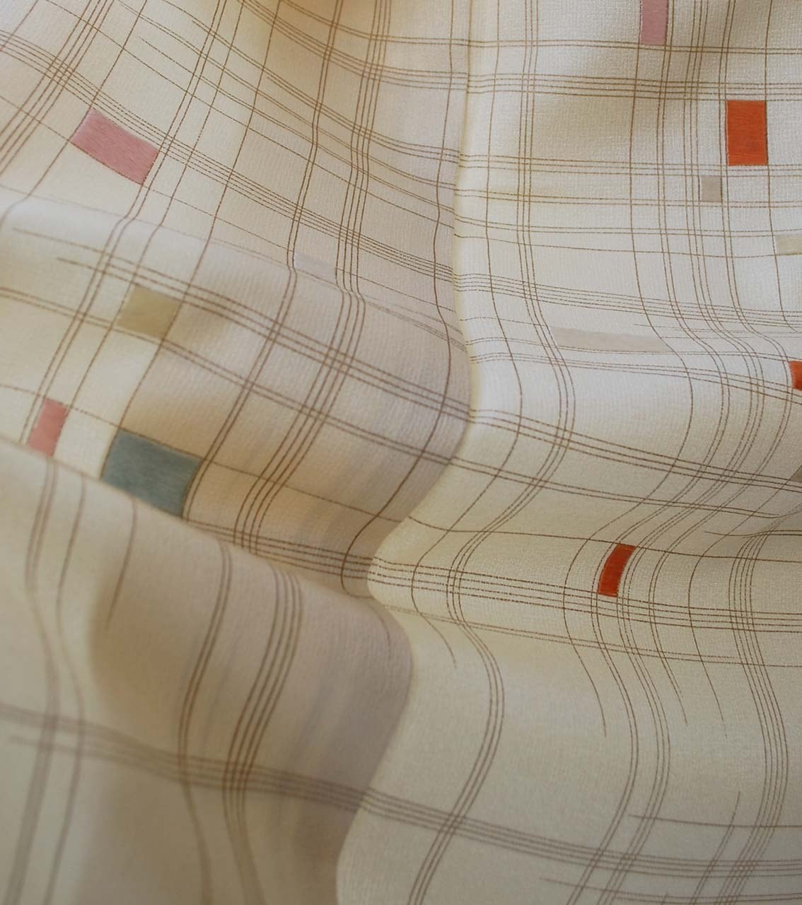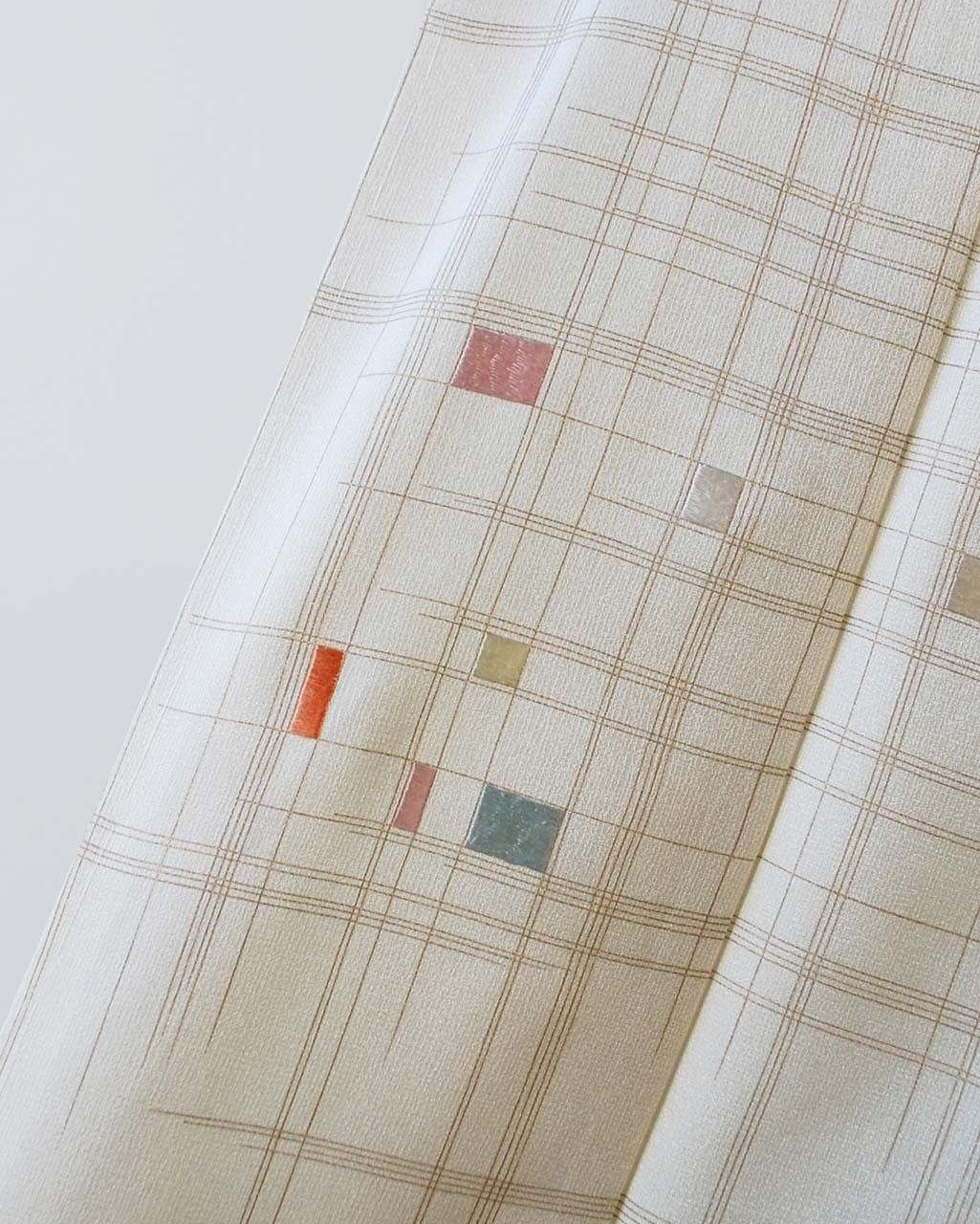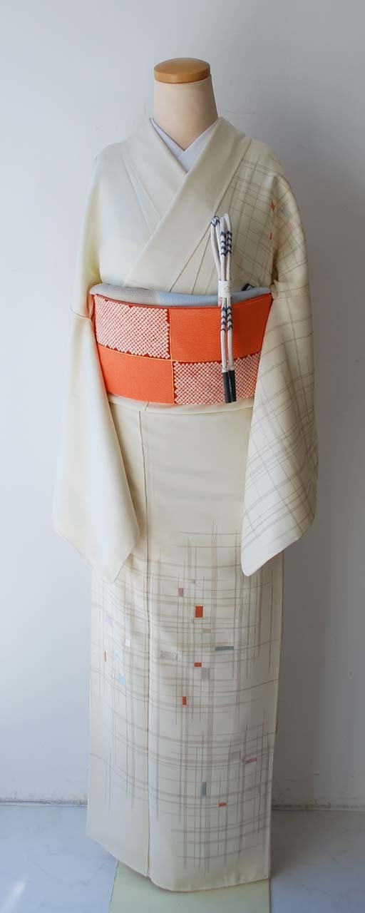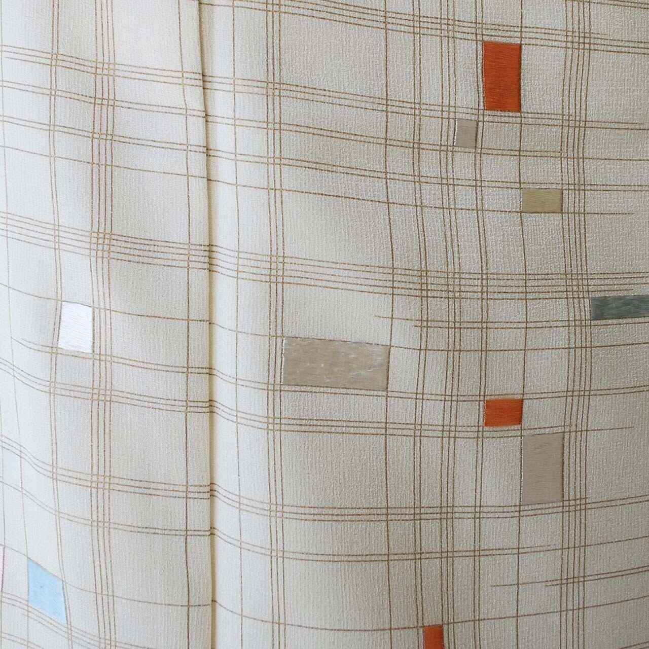 【袷】生成り色地 幾何学文 附下げ