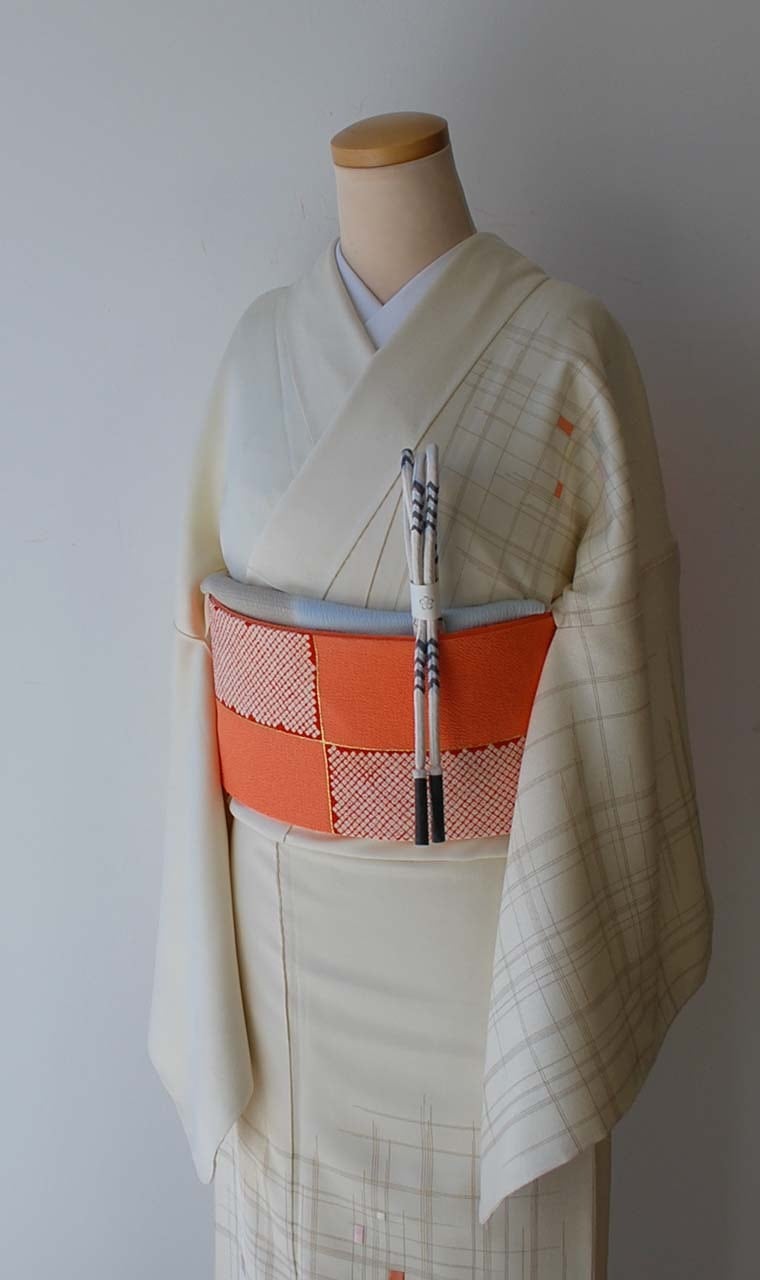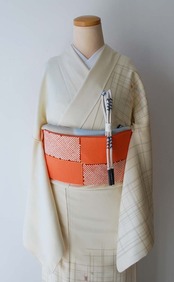 やわらかな生成り色地の附下げです。