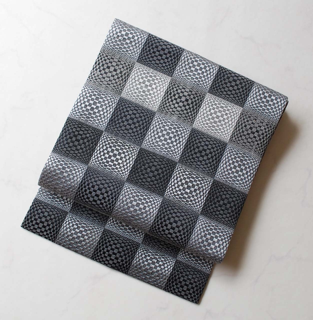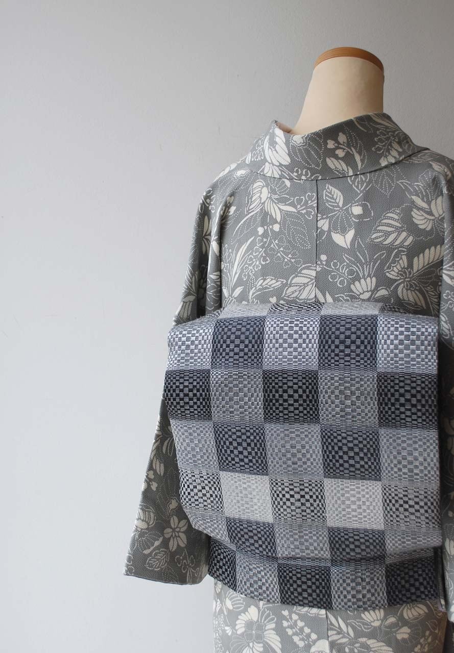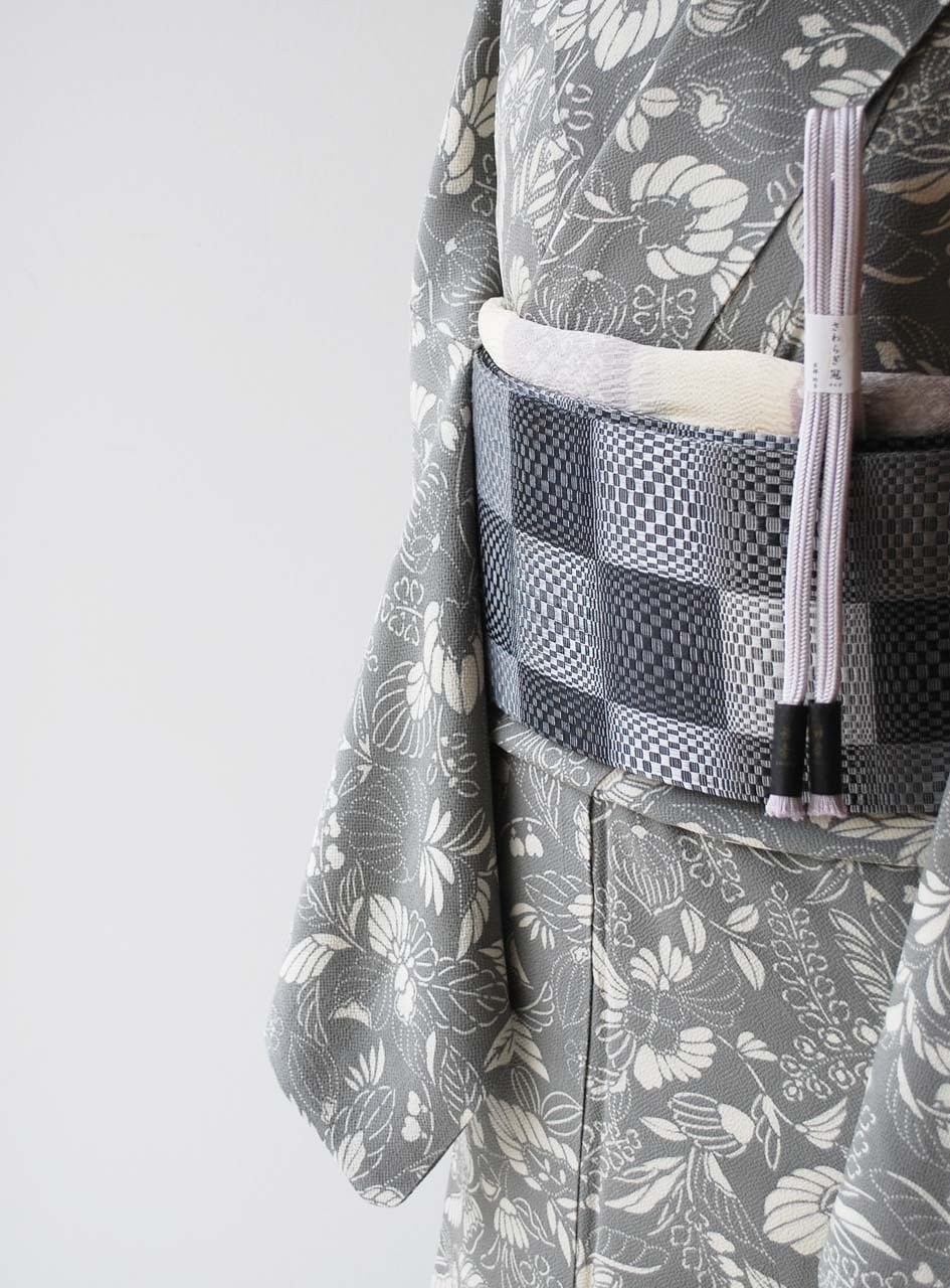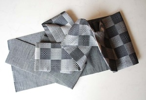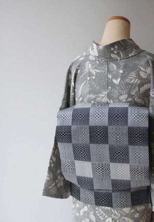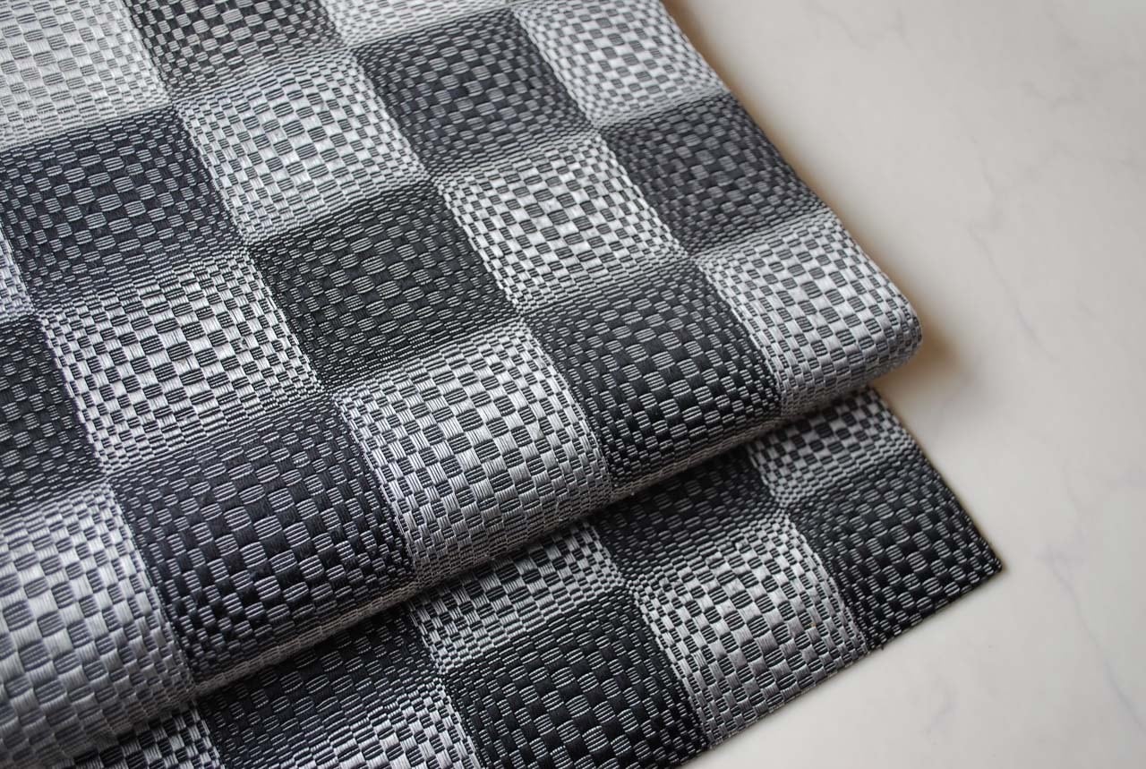 【なごや帯】モノクローム・トーン 市松文 なごや帯