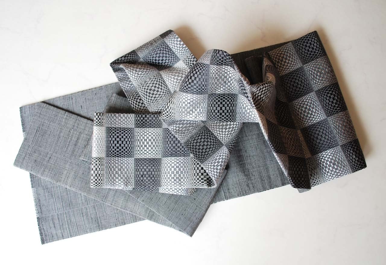 市松の一つ一つのブロックは紬地の織り地に