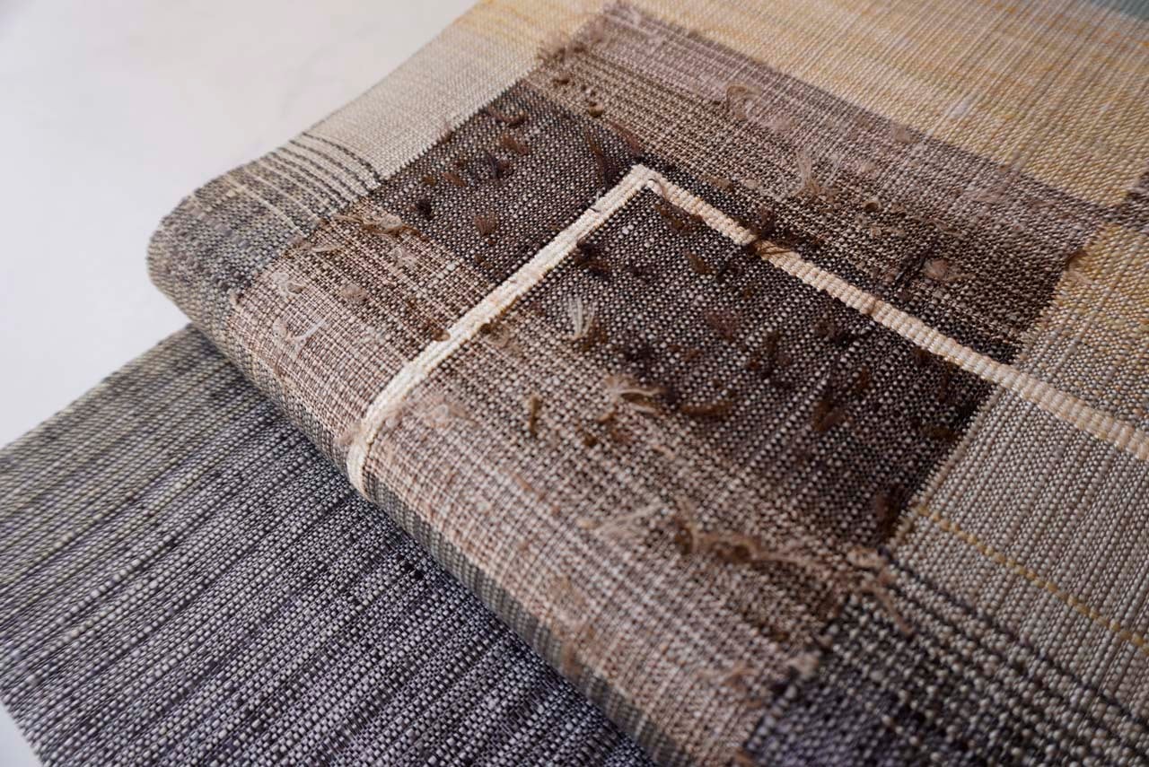 一部にはひげ紬のような糸出を施し、