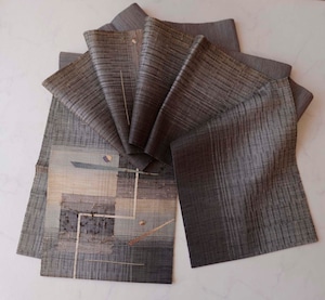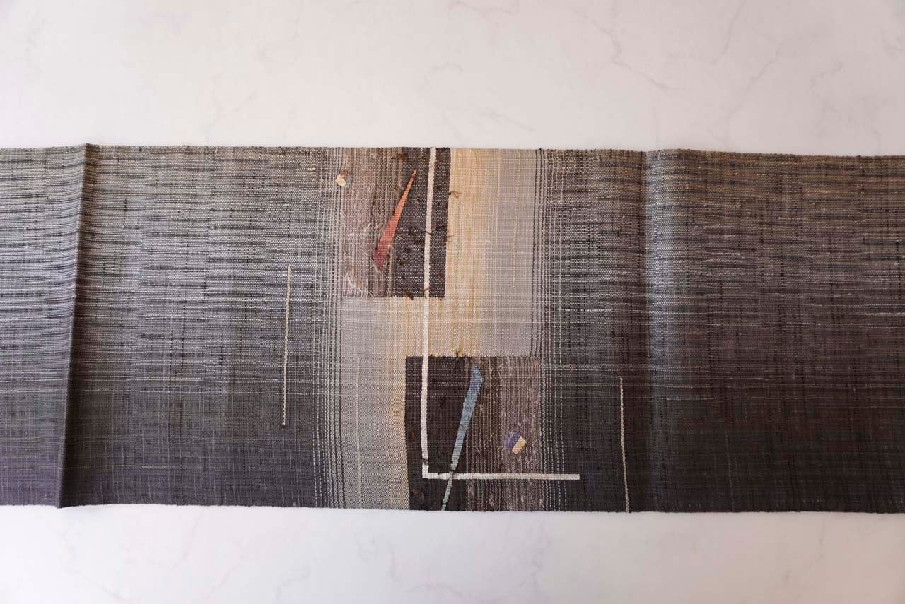 【ふくろ帯】黒鳶色x枯野色地 幾何学抽象文 ふくろ帯