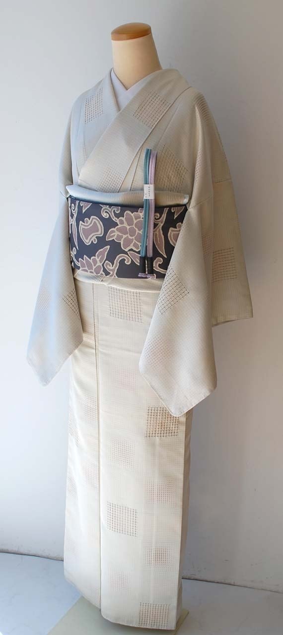 通しの織り柄と変わり市松のお柄が