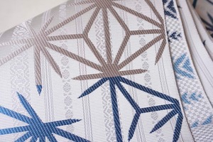 端のグレー地の部分は細かな幾何学文様