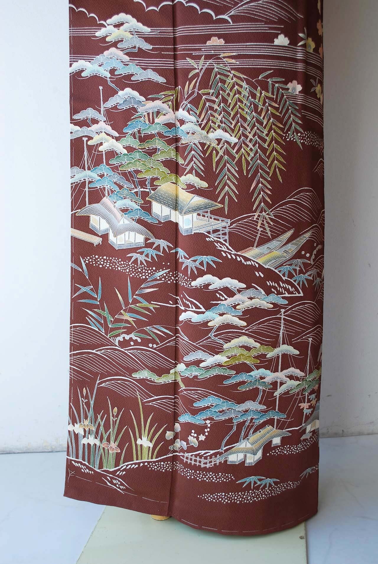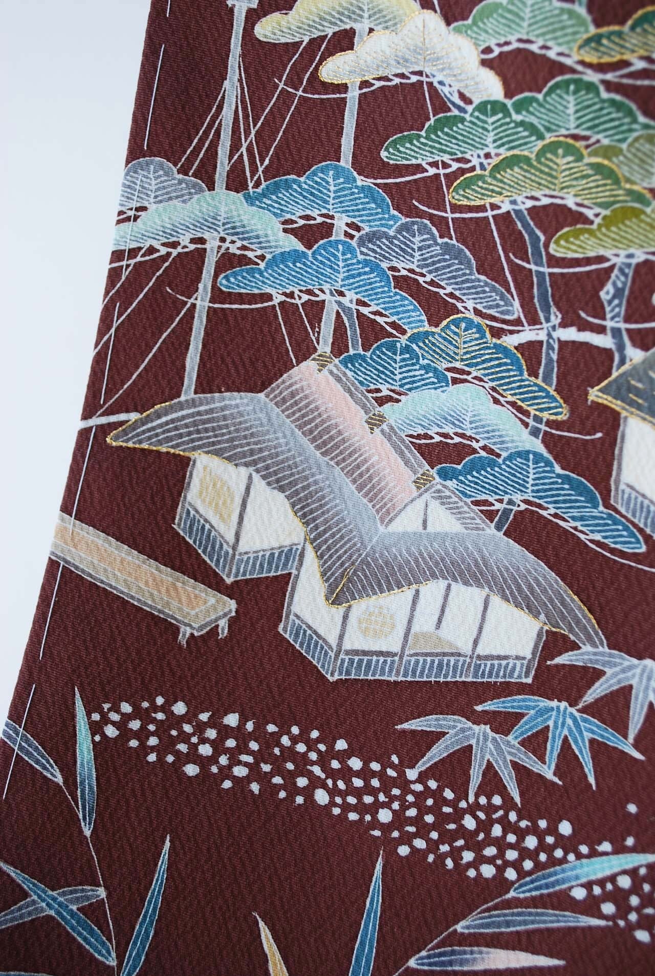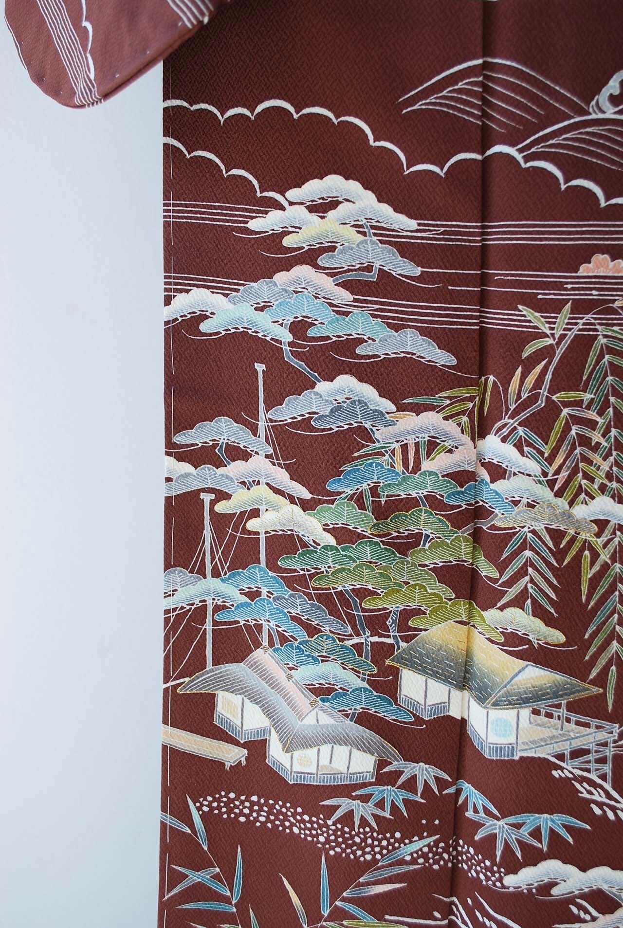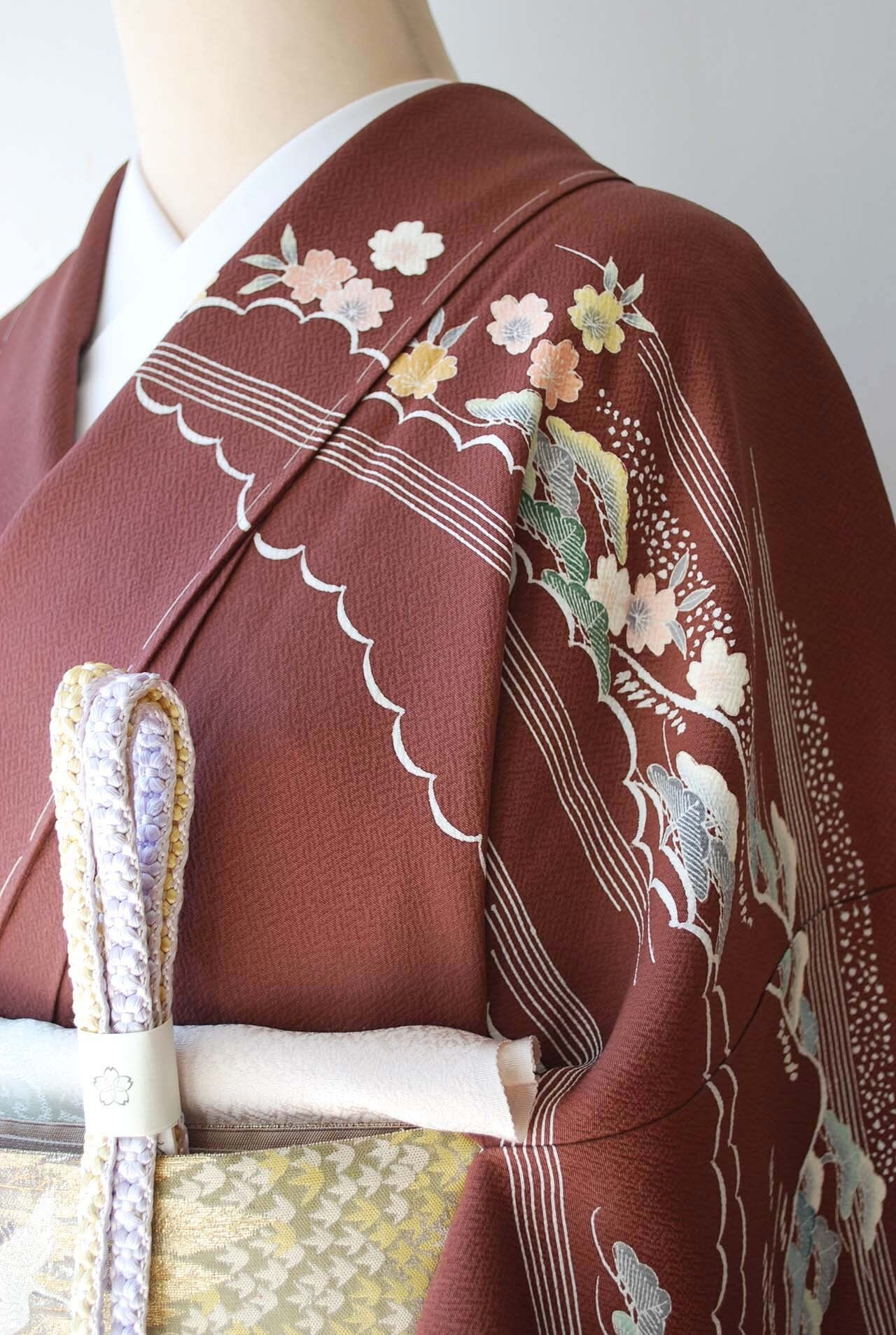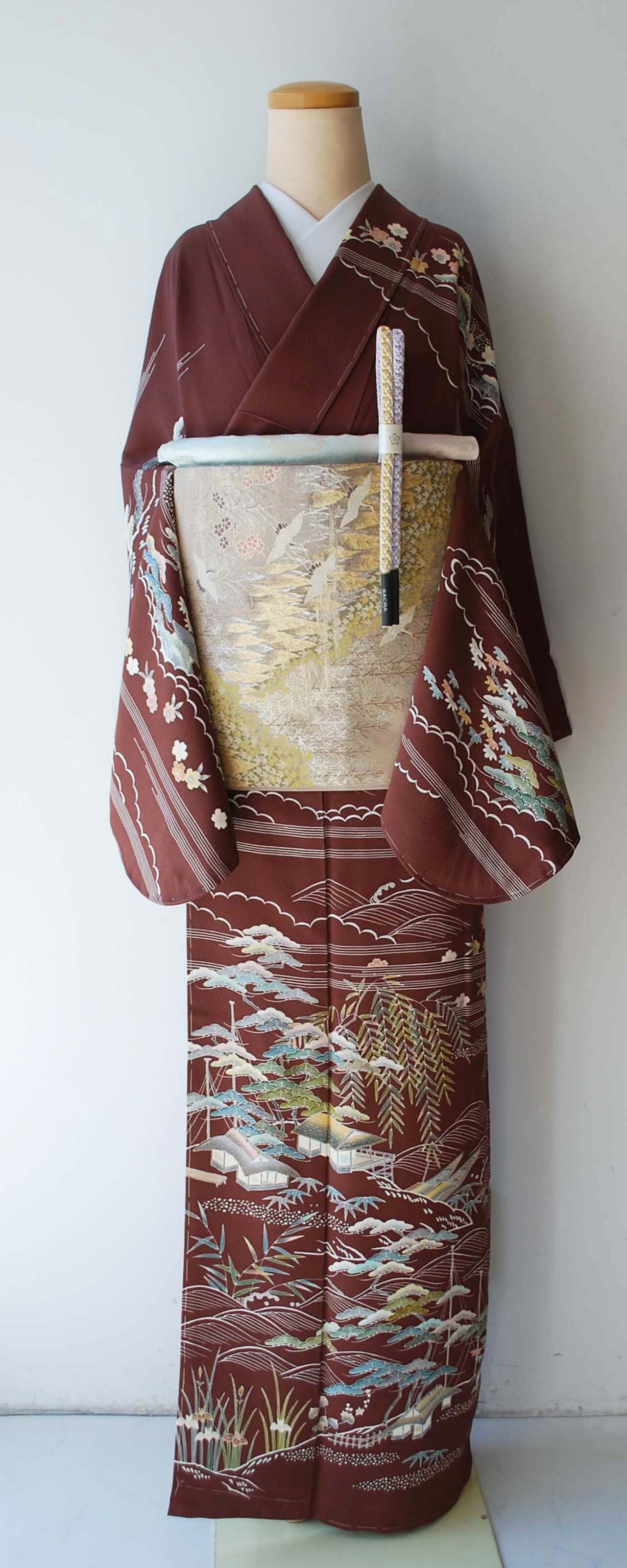 【袷】栗色地 御所解き文様 訪問着 上野工房落款入り