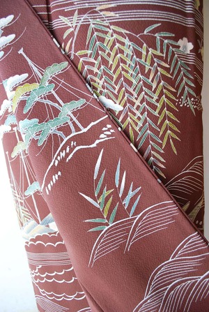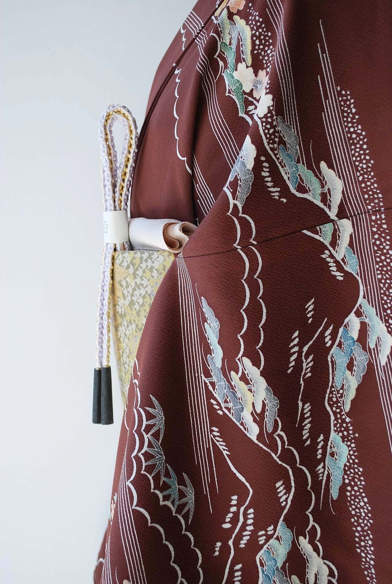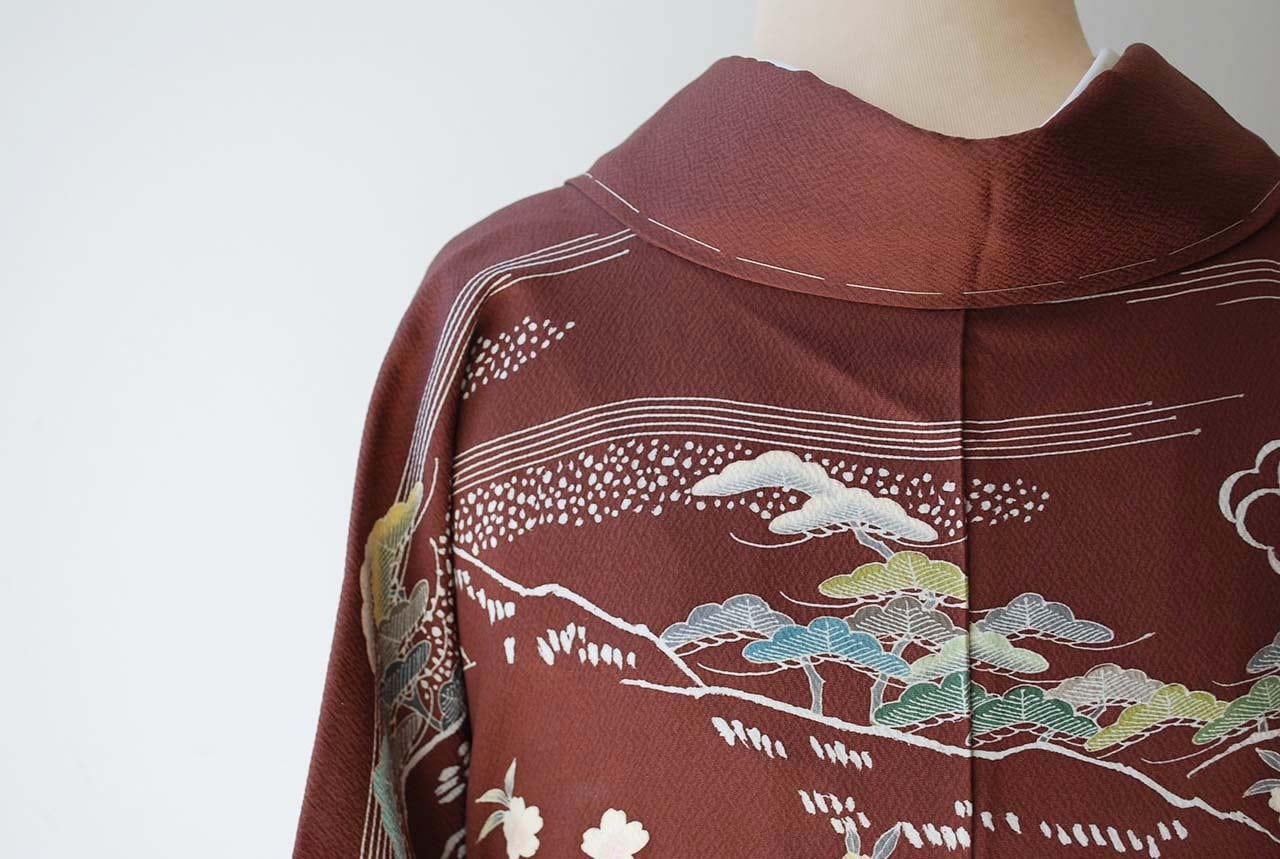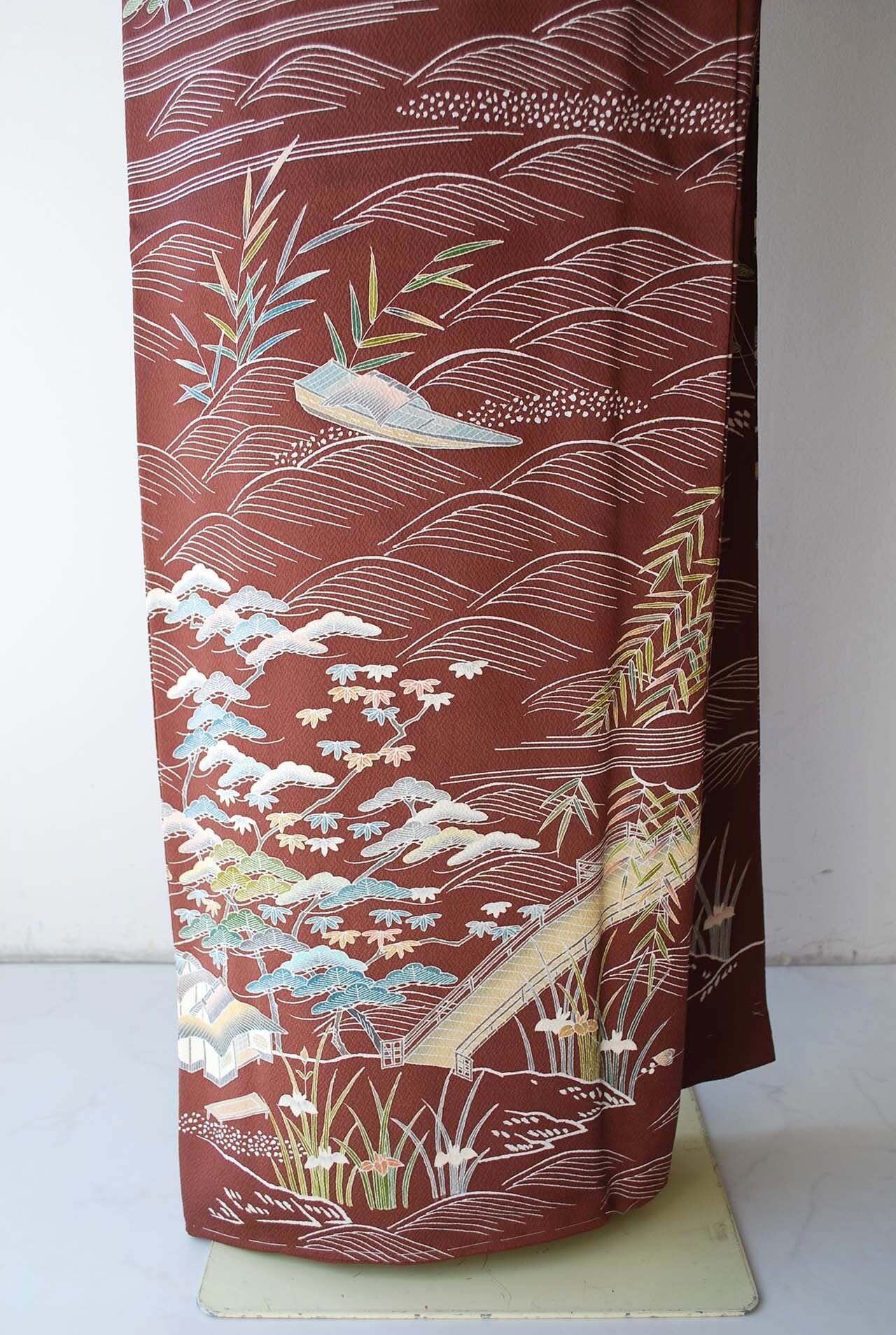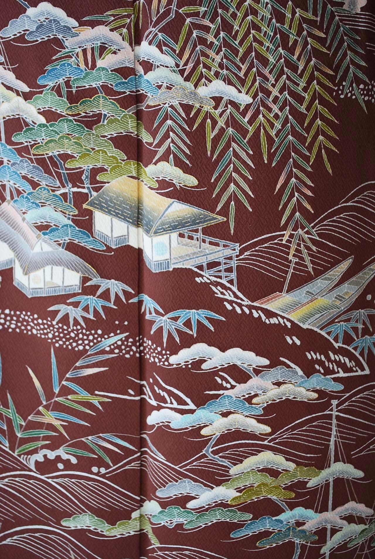 【袷】栗色地 御所解き文様 訪問着 上野工房落款入り