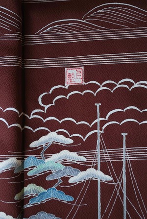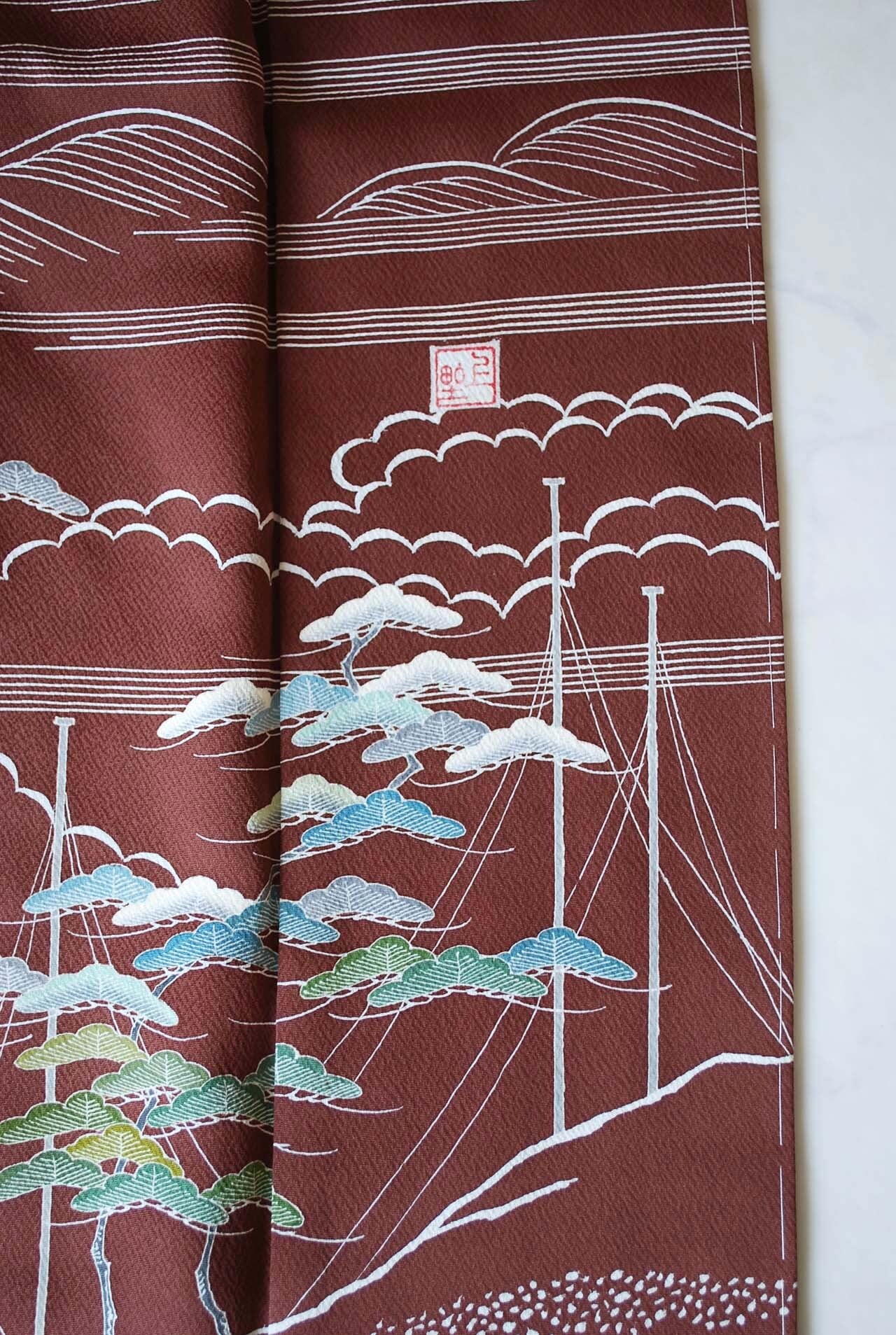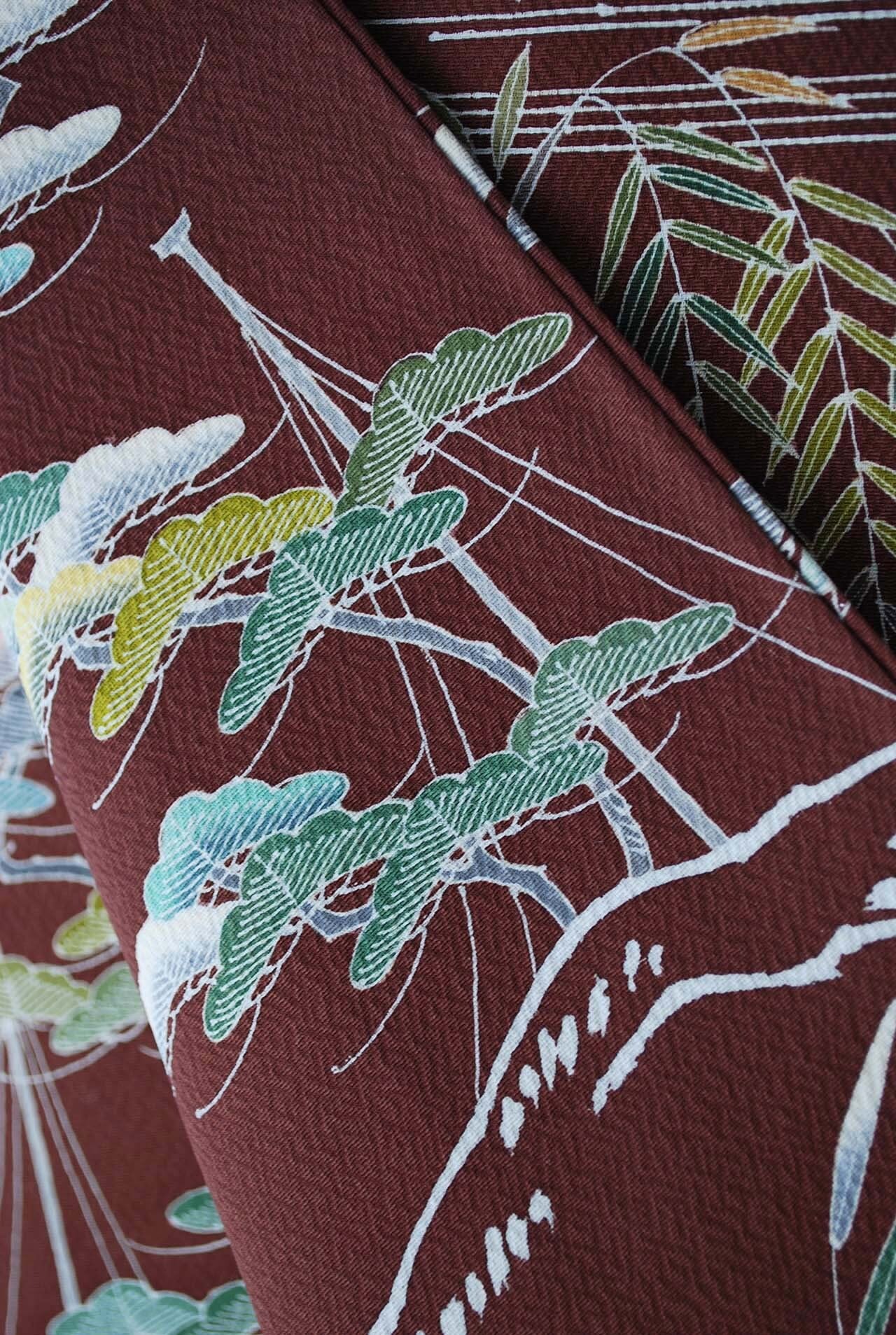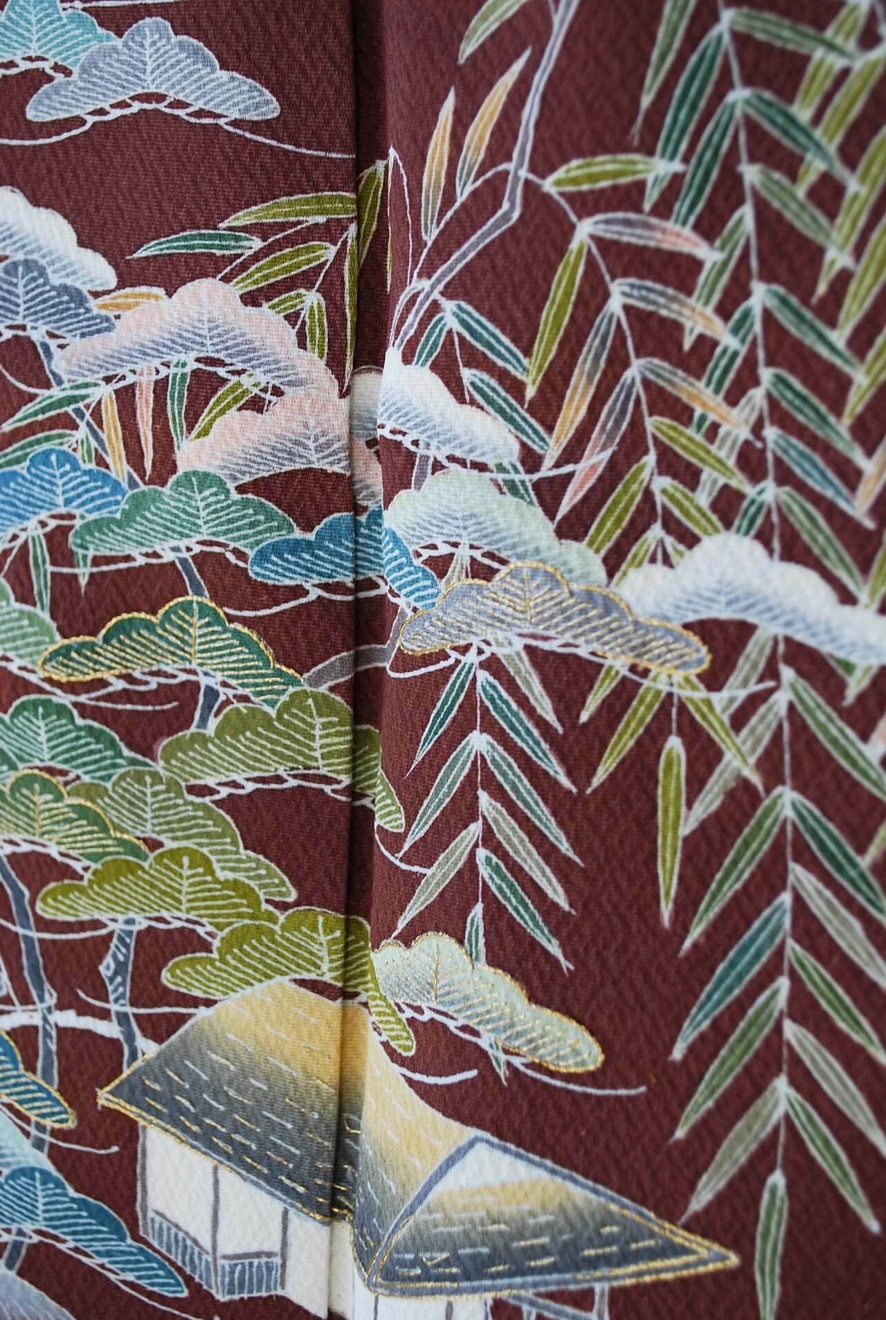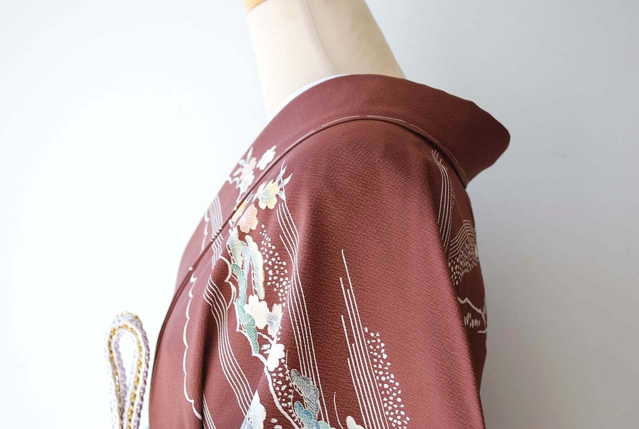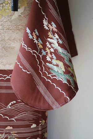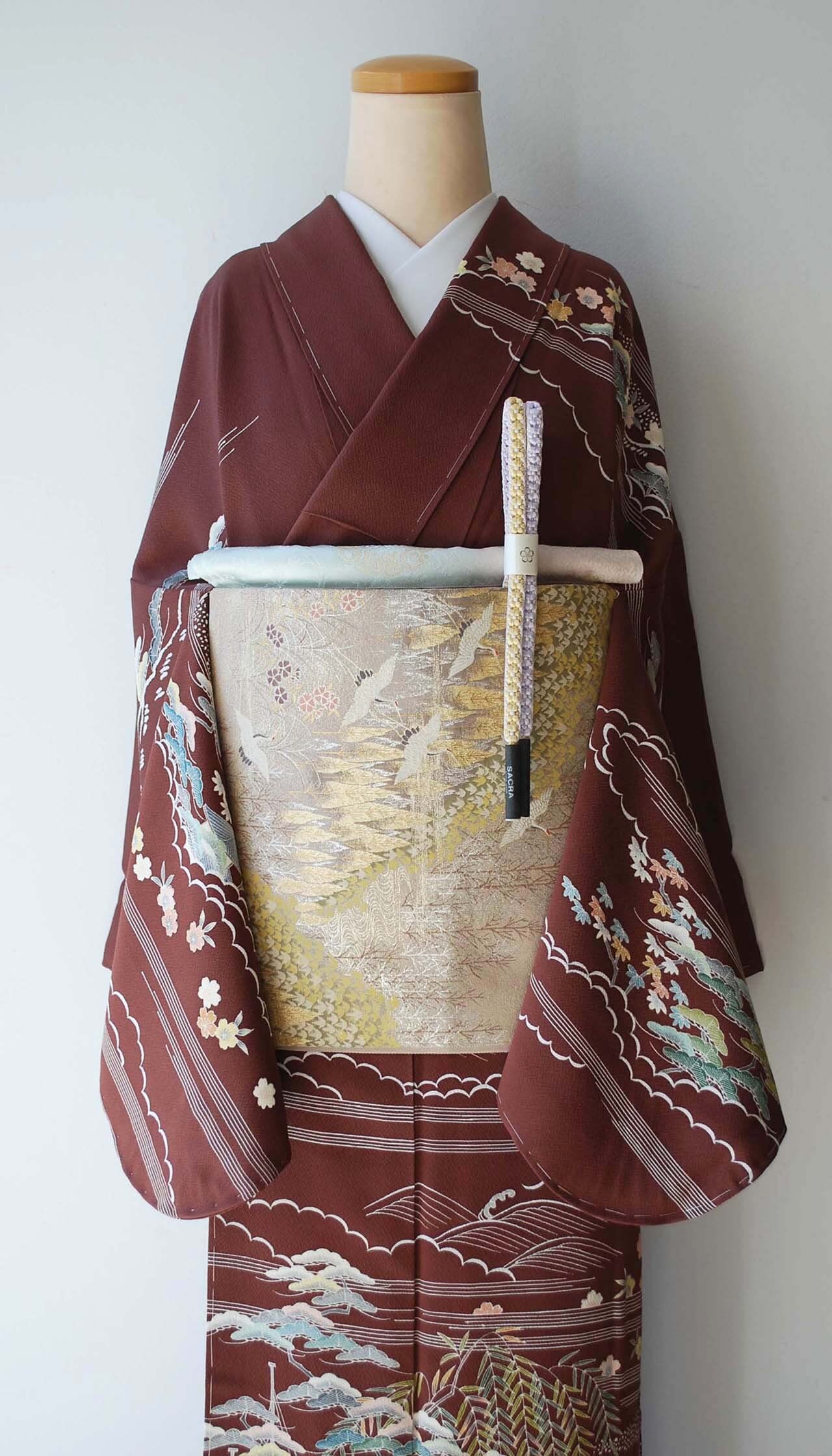 【袷】栗色地 御所解き文様 訪問着 上野工房落款入り