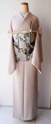 【袷】灰梅色地 百合地紋 色無地