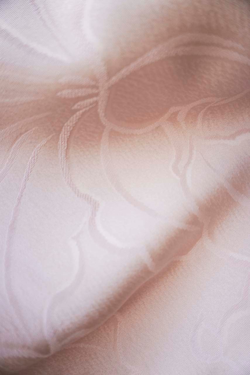 石竹色の糸で織り出された大輪の百合の花が、