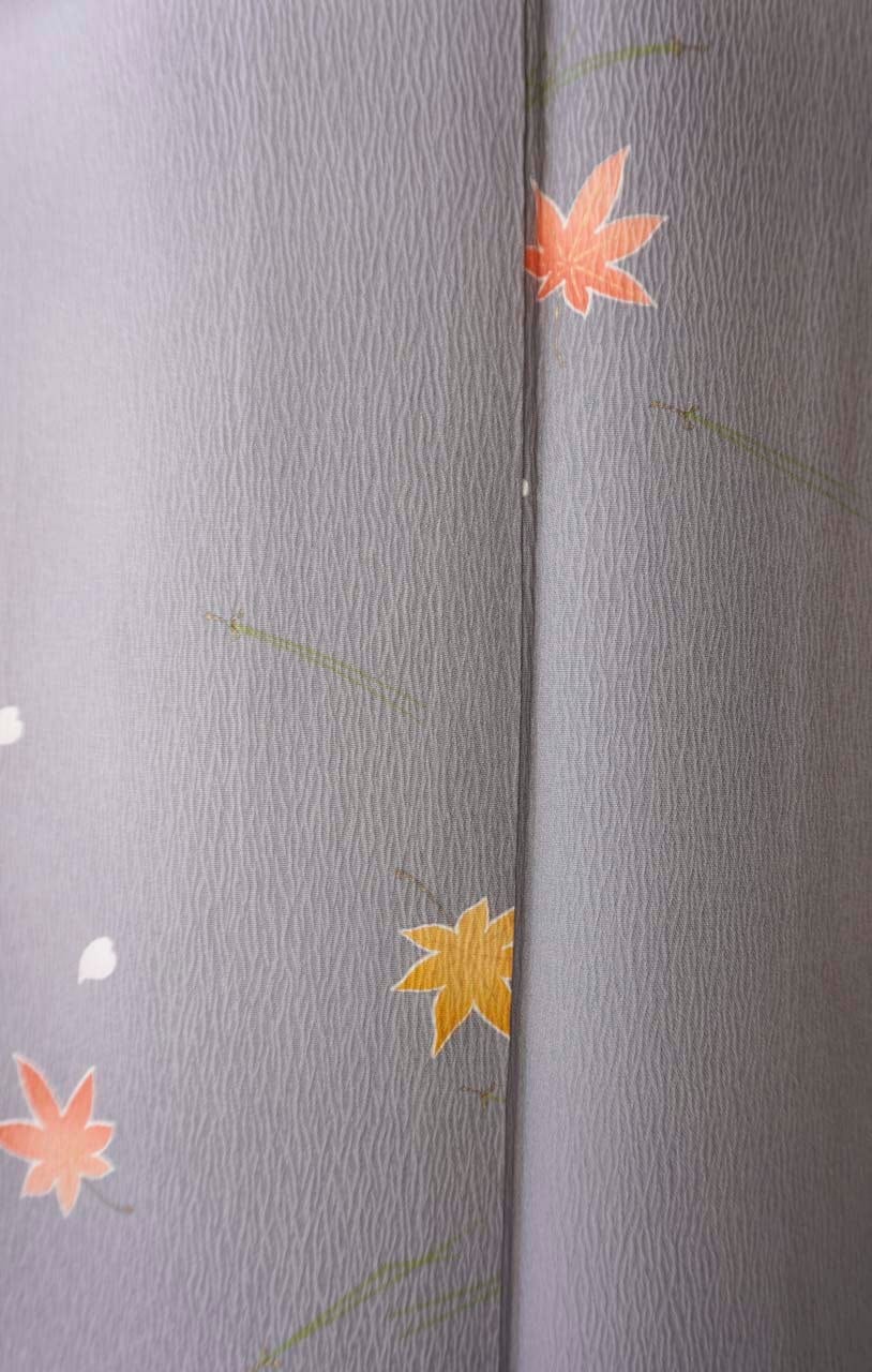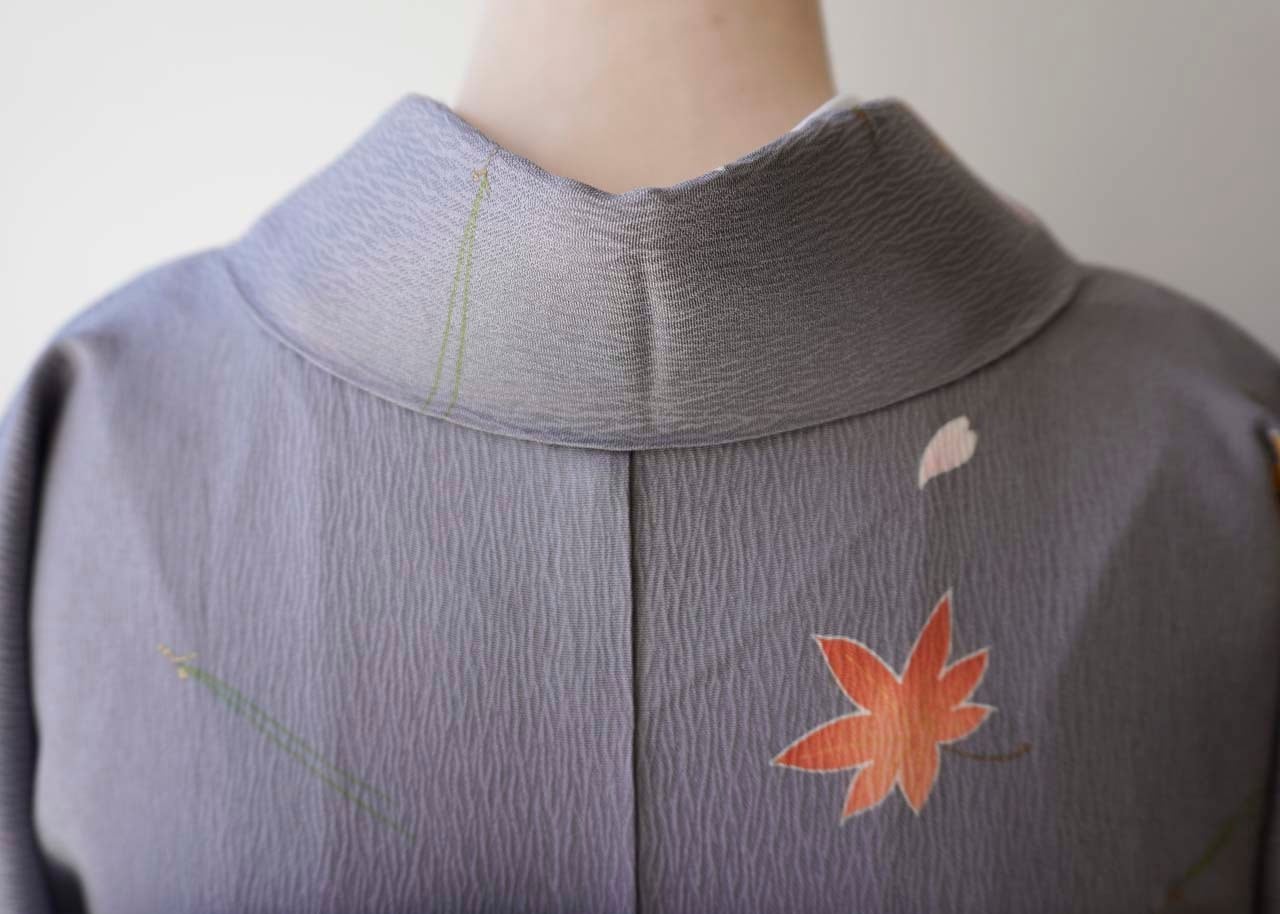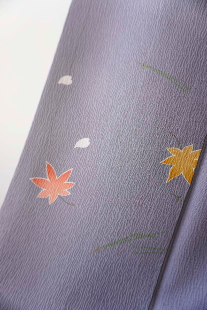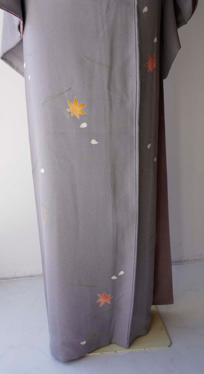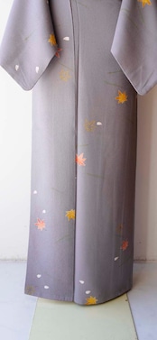 【袷】染の北川製 紫鼠色 吹き寄せ紋 小紋