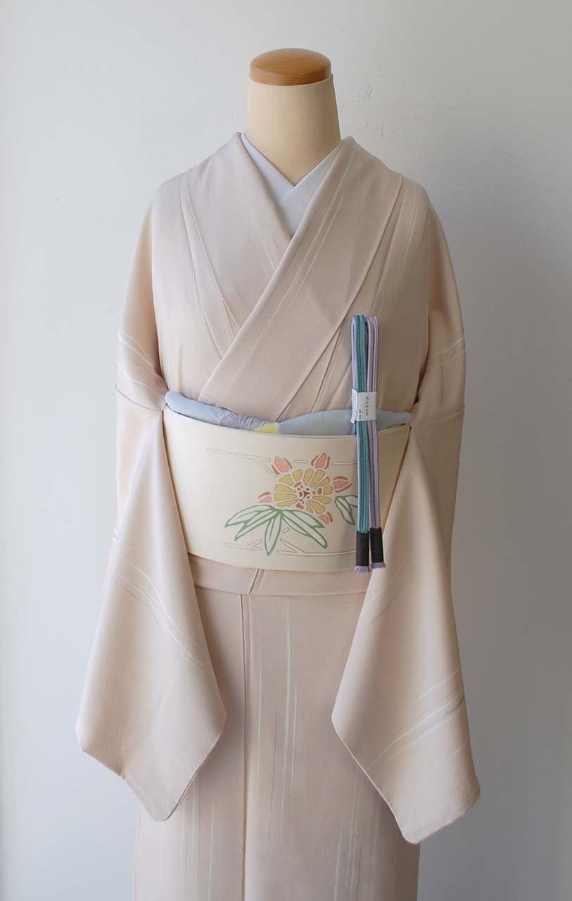 聴色(ゆるしいろ)×胡粉色の万筋に