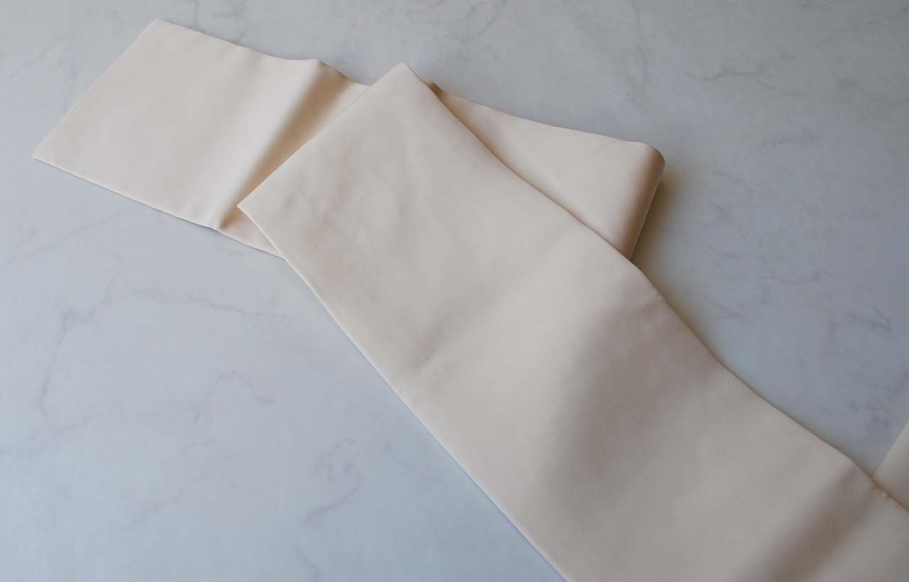 【なごや帯】生成り色 抽象花笹文 塩瀬なごや帯
