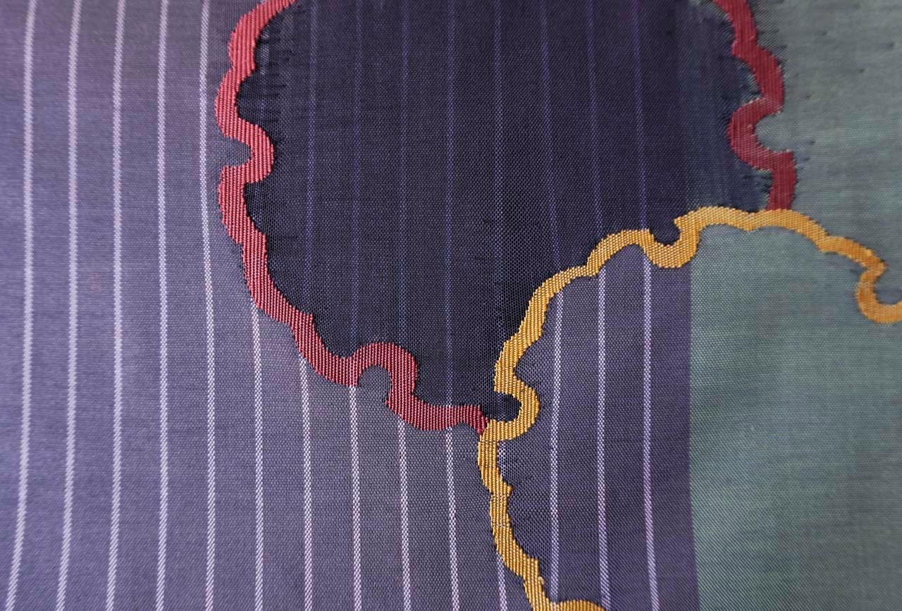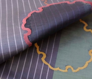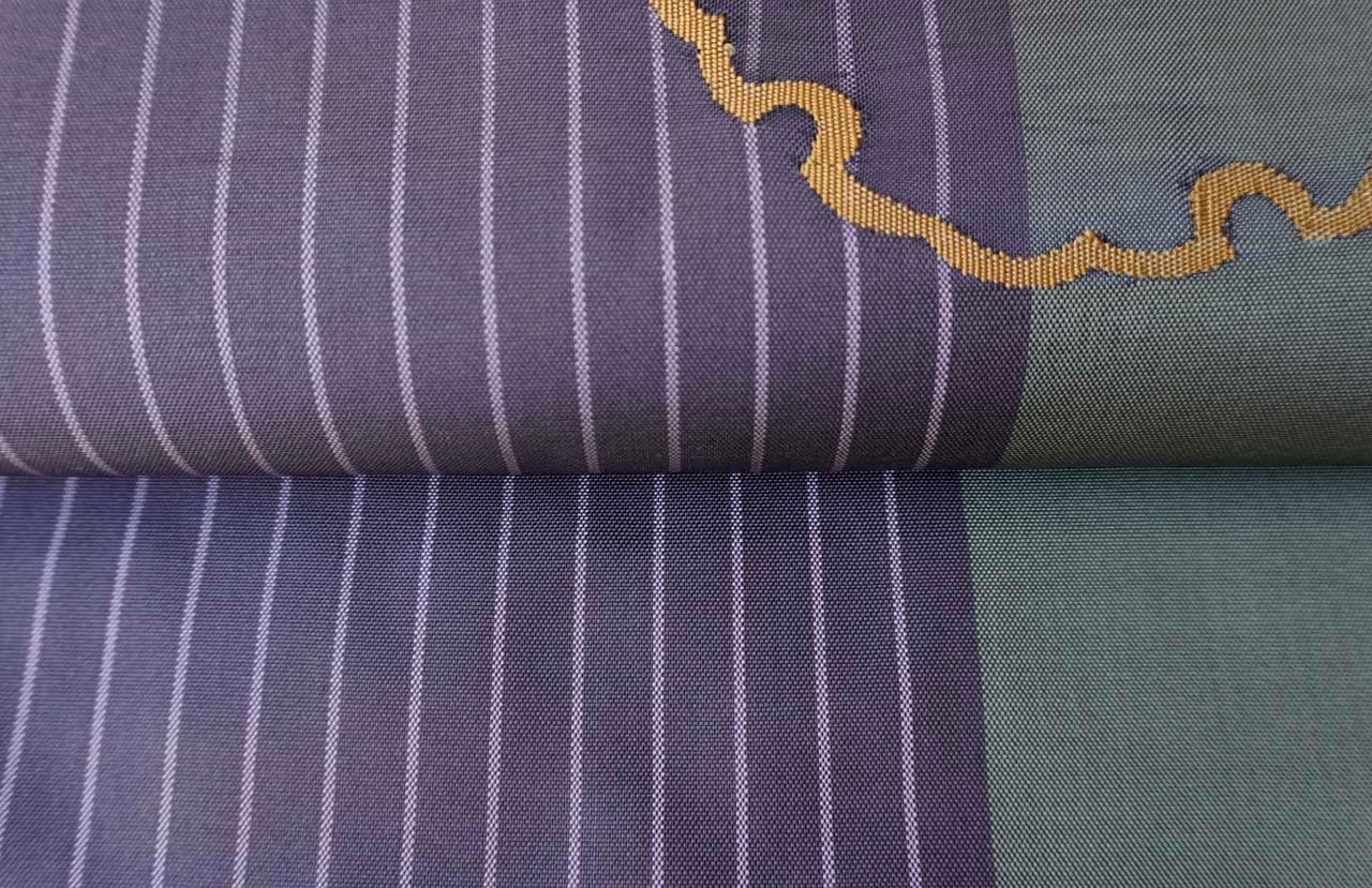 すっきりとした縞文に、すくい織が施された