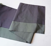 【ふくろ帯】まこと織物製 墨×老竹色 縞に雪輪文 ふくろ帯