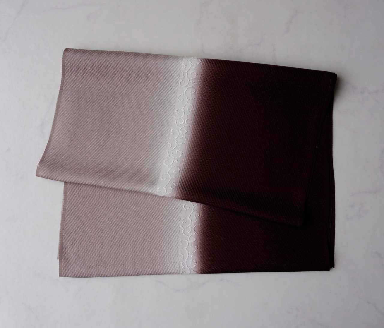 【衿秀・帯揚げ】錆色 ×赤白橡 風通染め分け唐草 帯揚げ 260214⑧