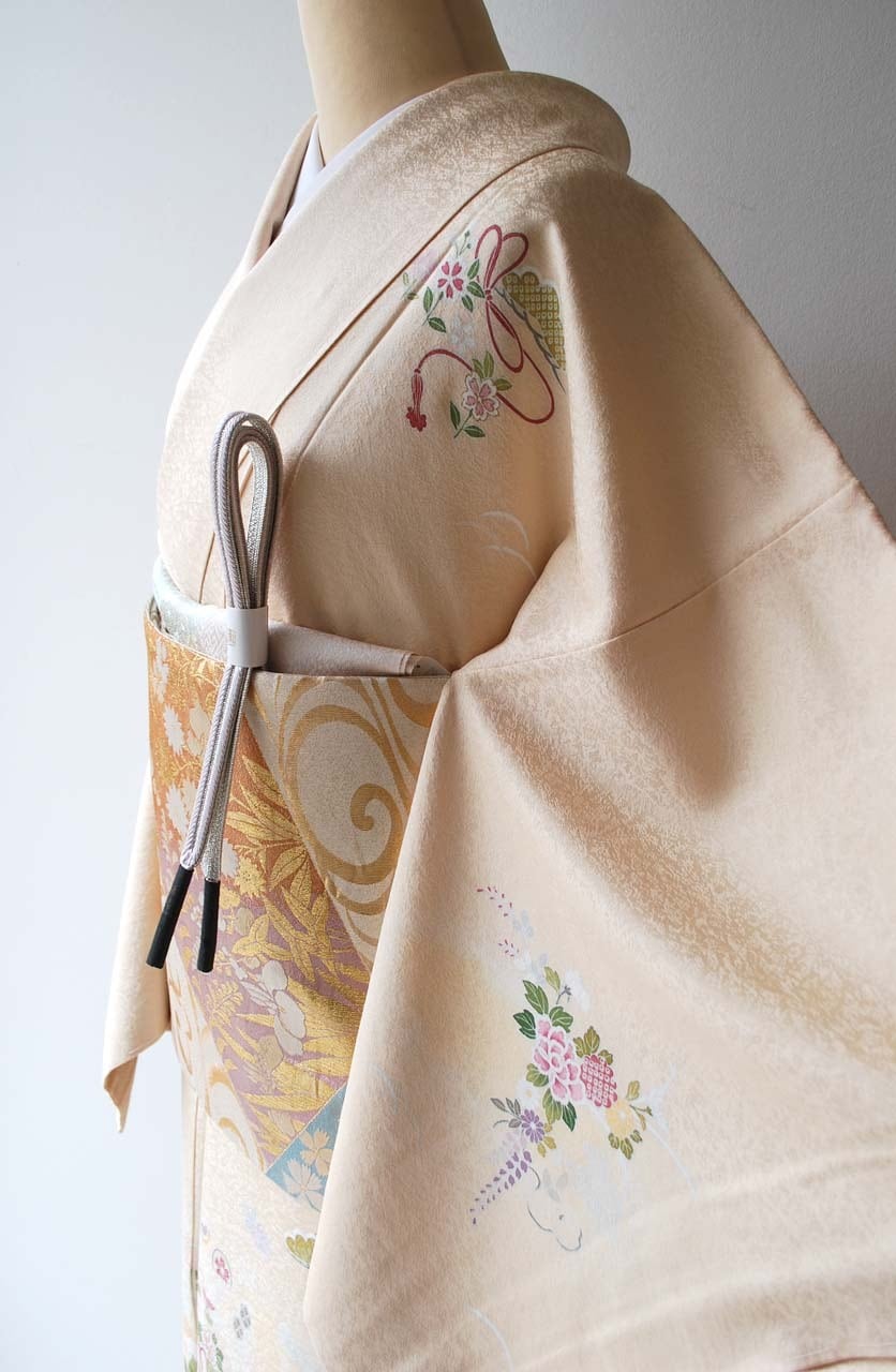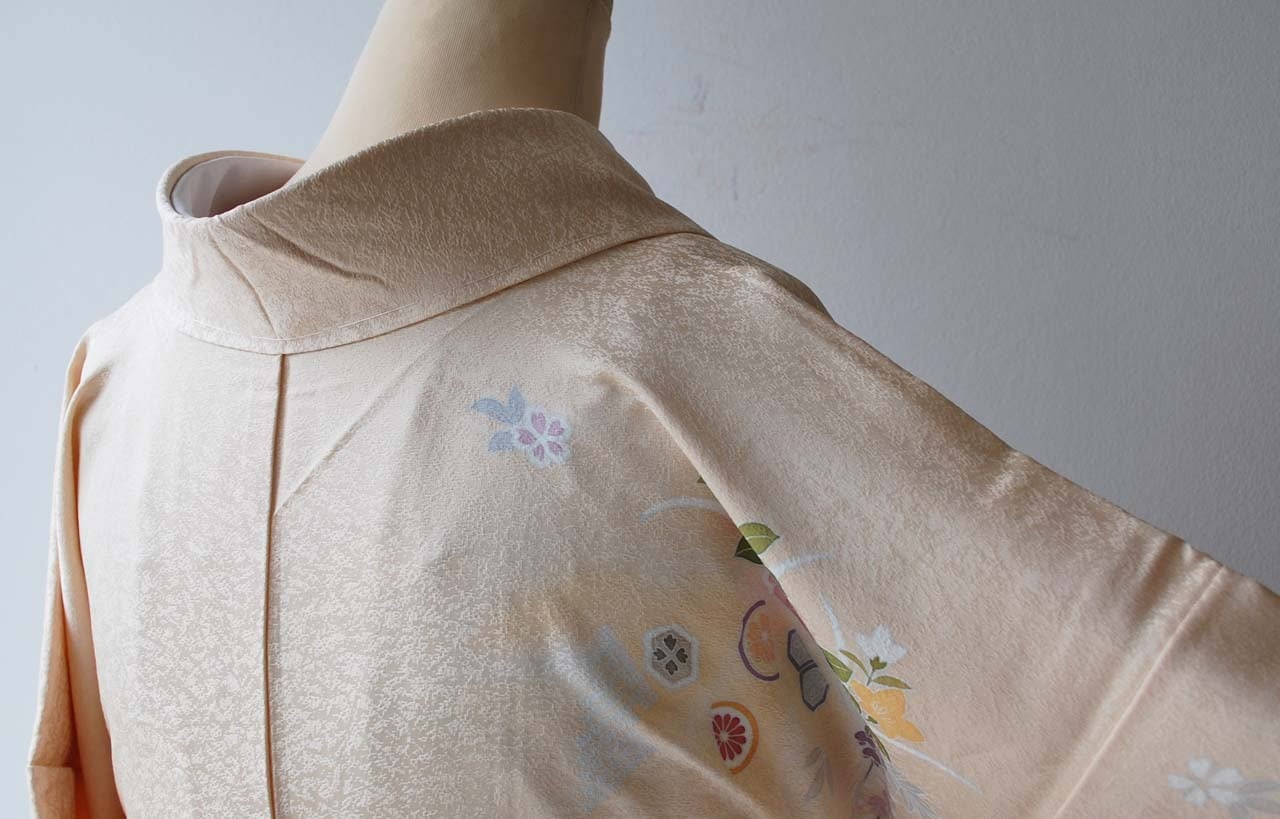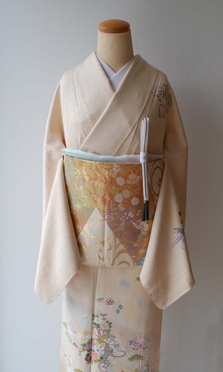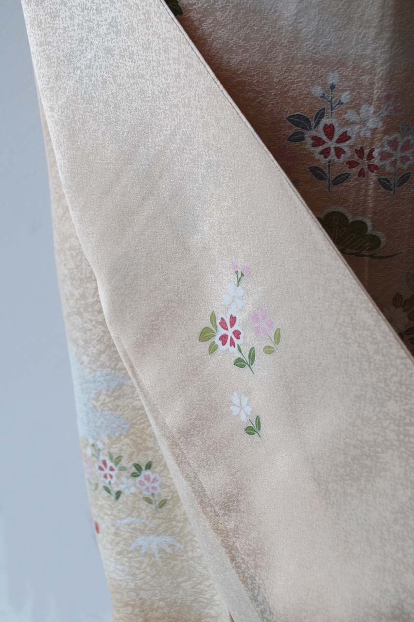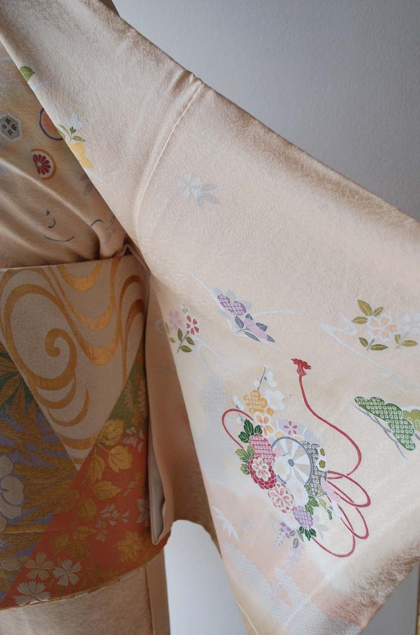 【袷】肌色 源氏車に吉祥四季花文 訪問着