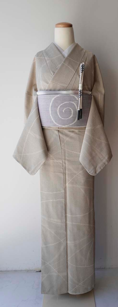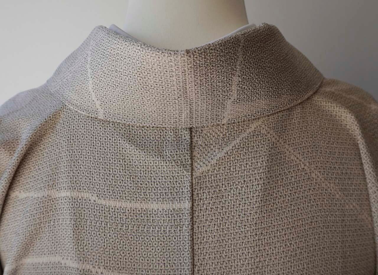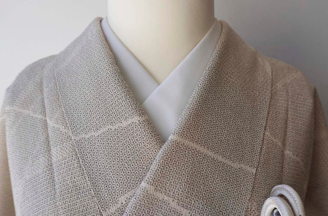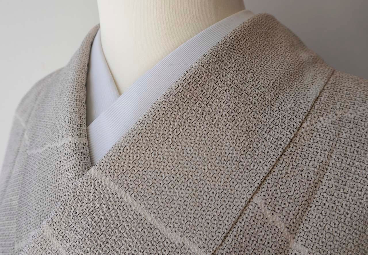 【袷】ゆとりサイズ 生成り地 塩沢亀甲絣