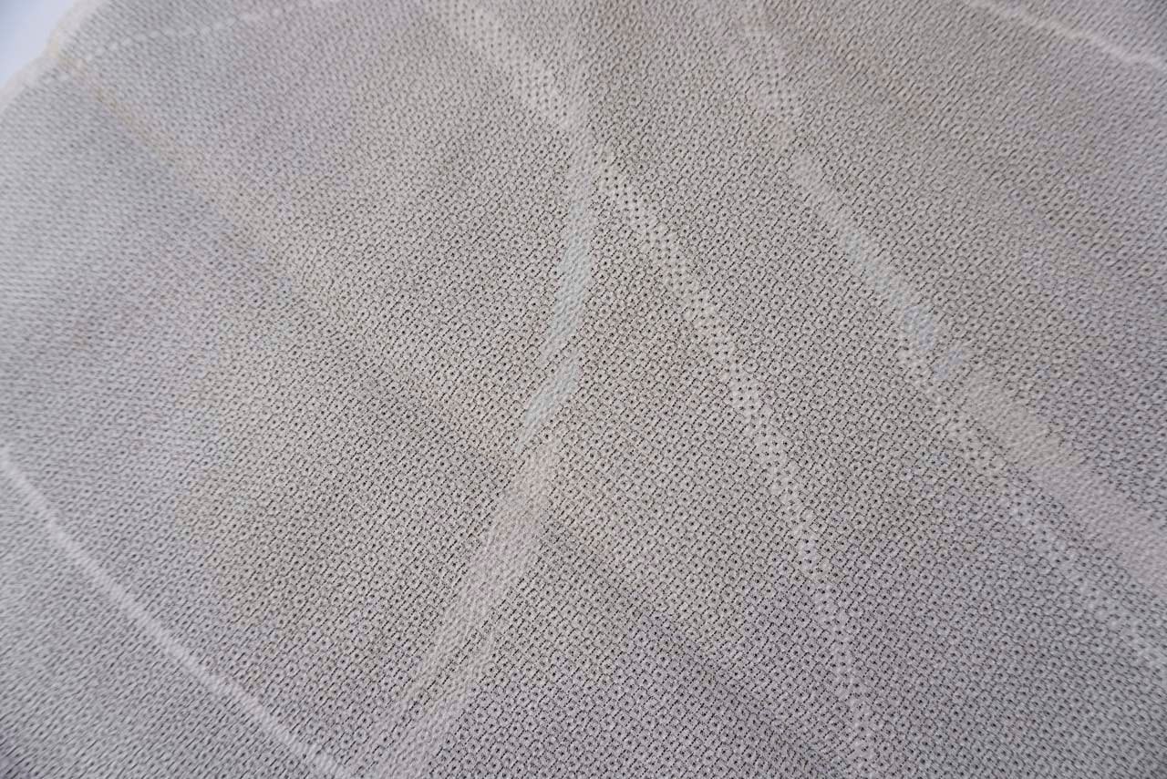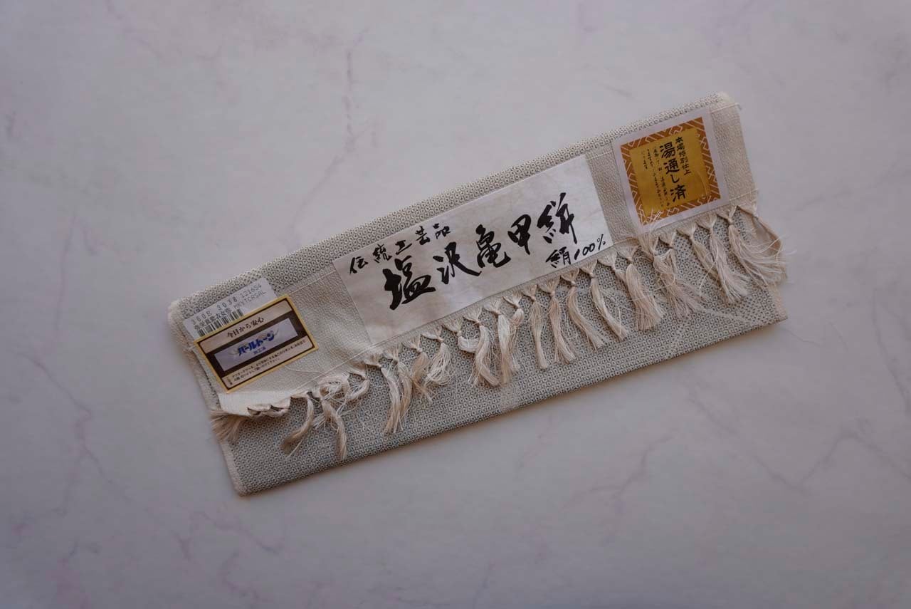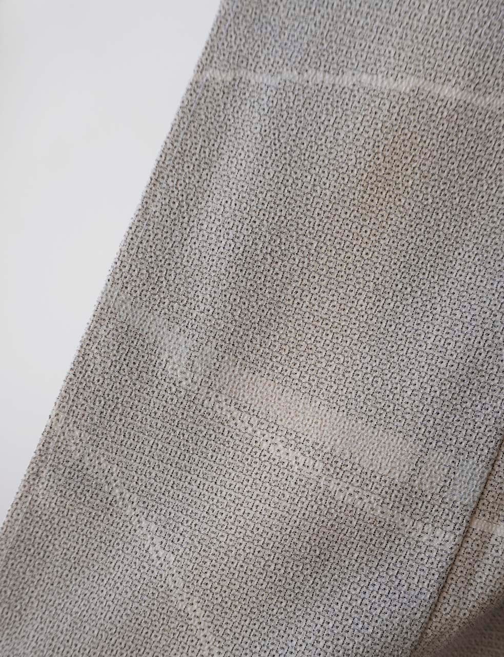 生成りに黒糸で細かな亀甲絣が施されています。