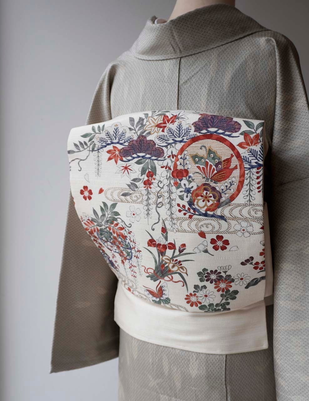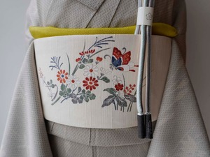 シンプルなお着物では帯を主役にしたコーディネイトも