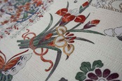 生成り色地に四季草花文の染めのなごや帯です。