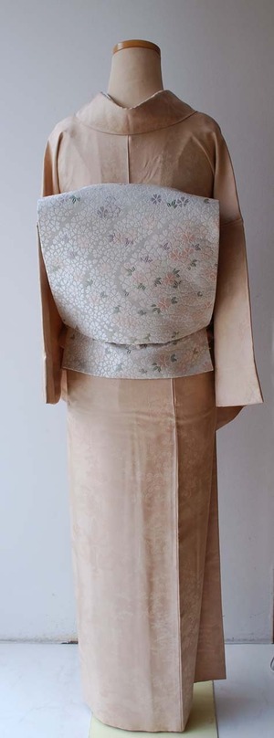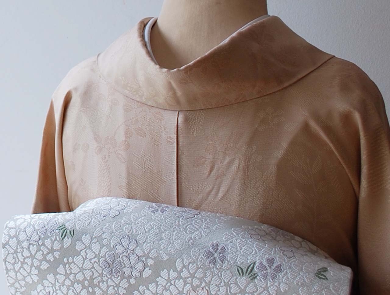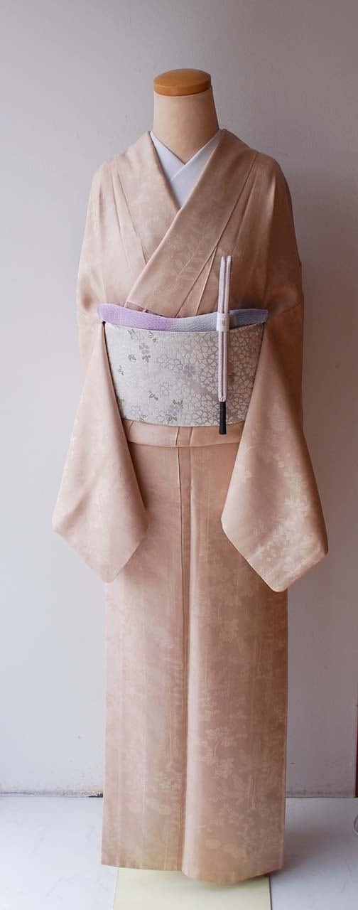 【袷】永治屋清左衛門 製 人色地 四季植物文 色無地