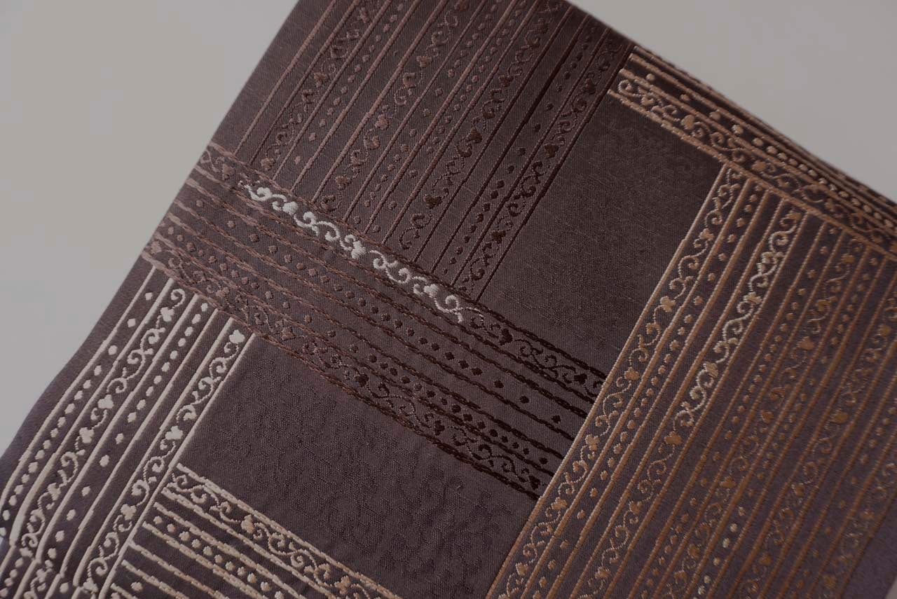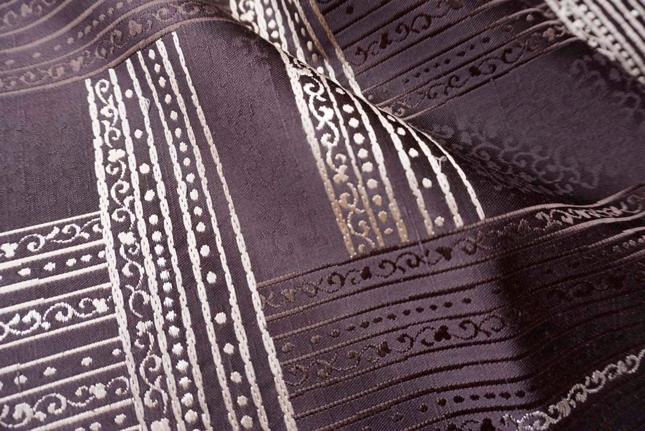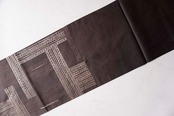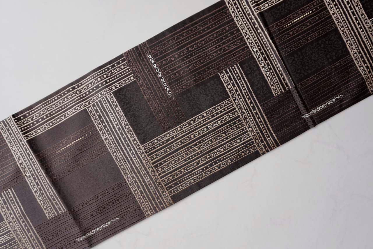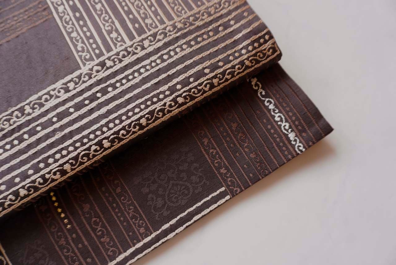 【ふくろ帯】黒檀色 ラインに唐草文 リバーシブル ふくろ帯