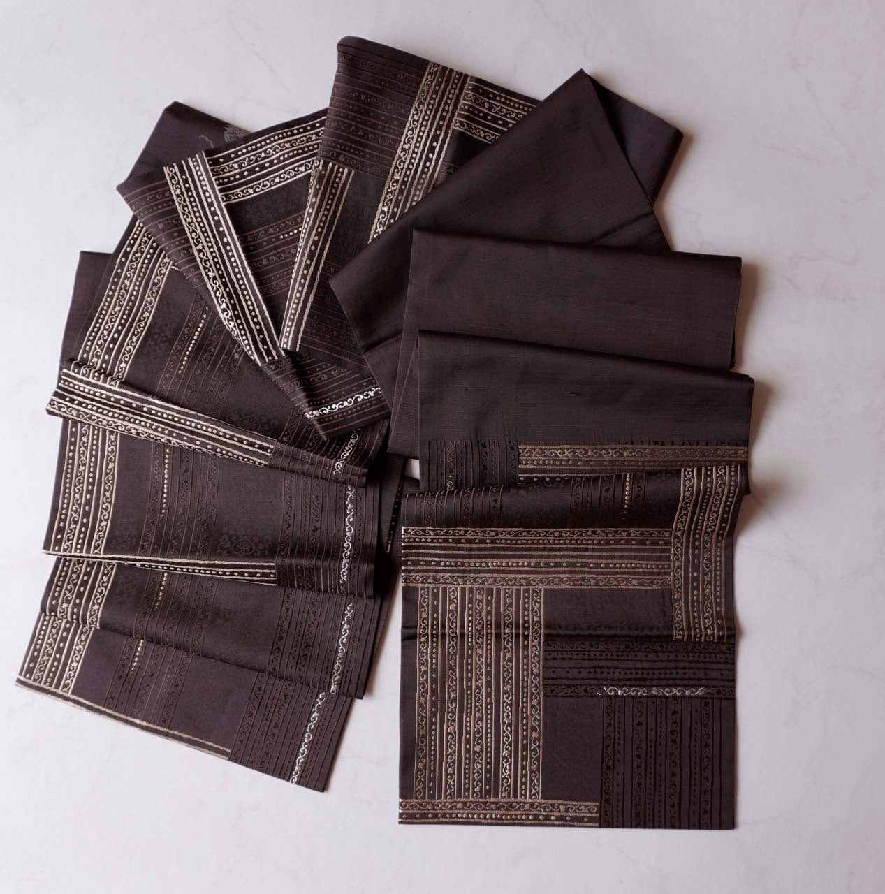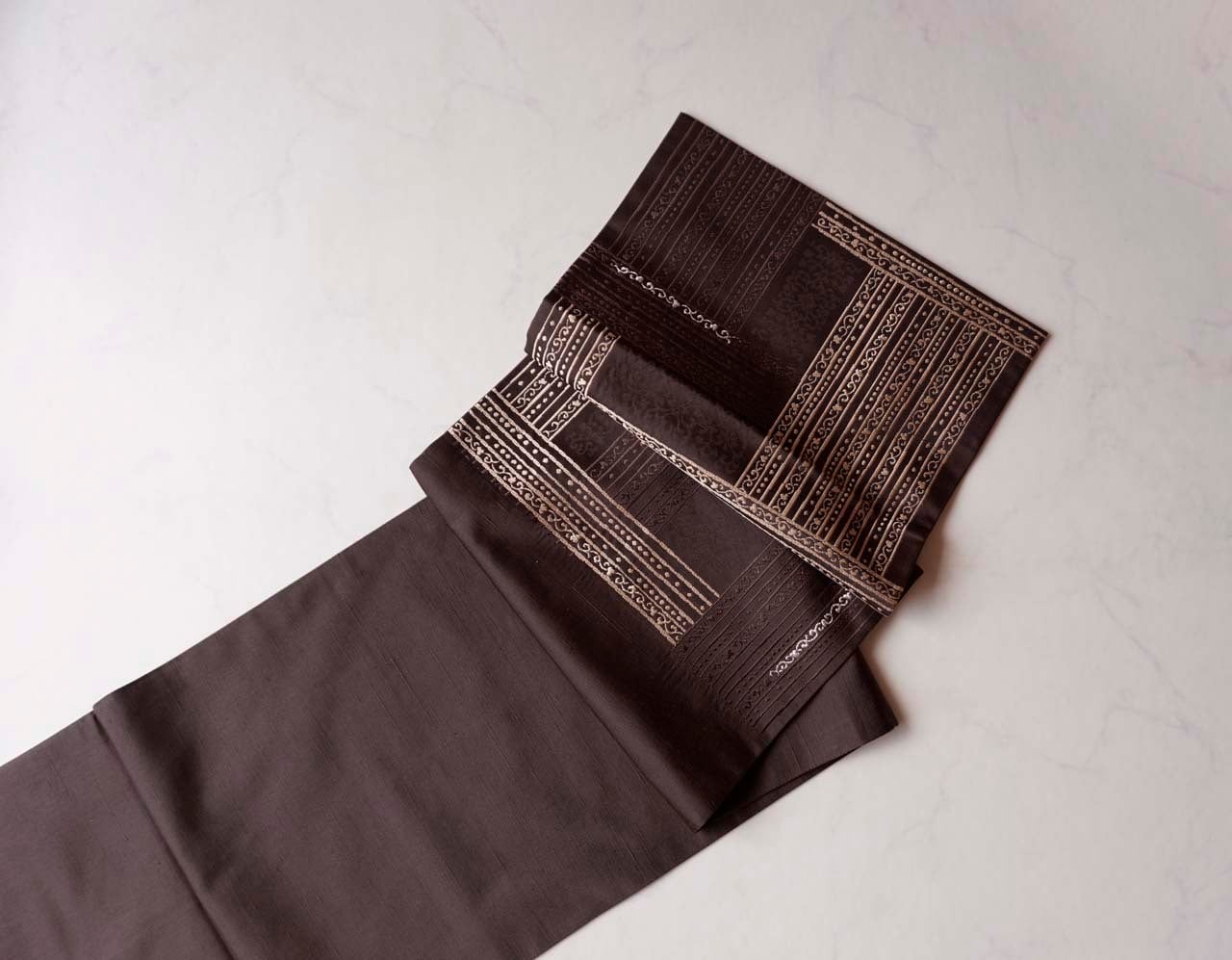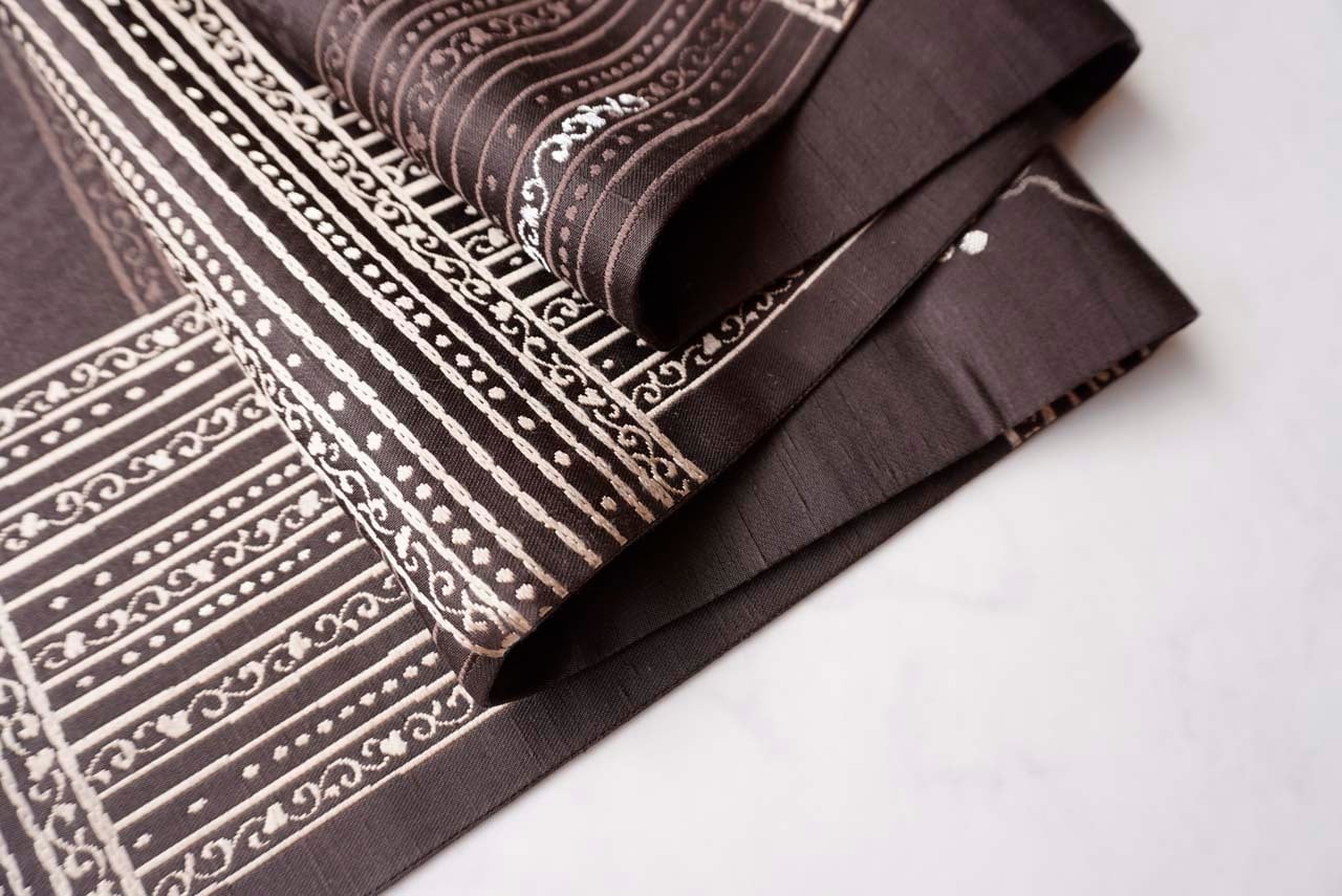 【ふくろ帯】黒檀色 ラインに唐草文 リバーシブル ふくろ帯