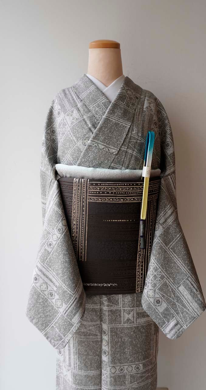 柄の詰まったお着物にあわせて
