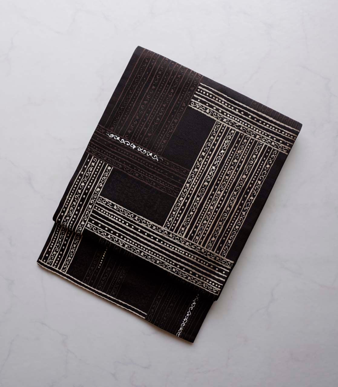 帯全体を大きく区切るよう走る縞と緯の