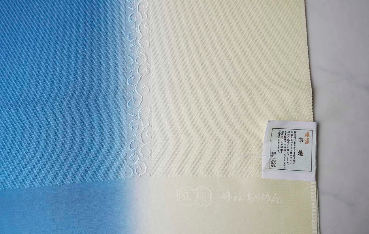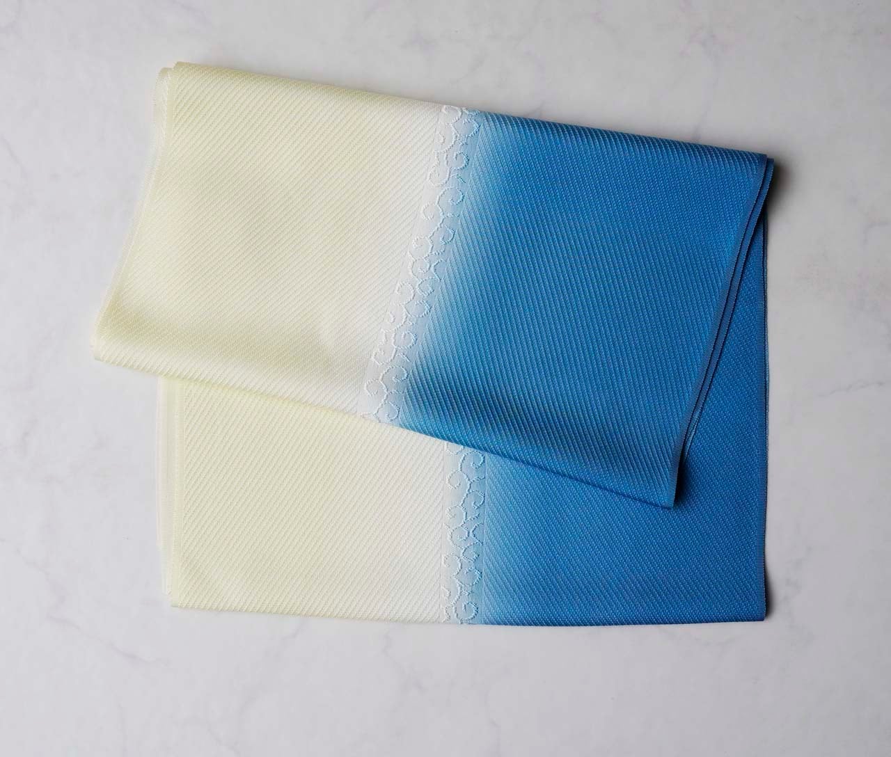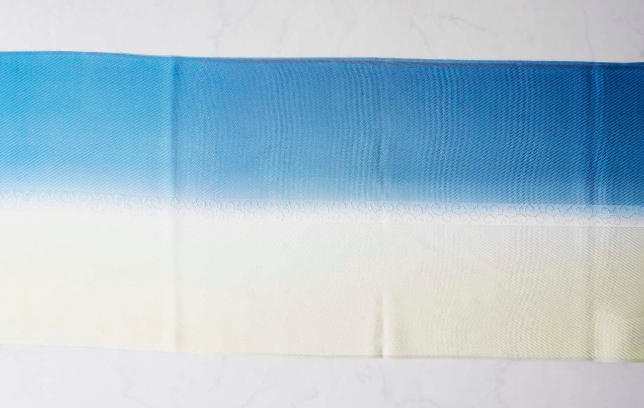 【衿秀・帯揚げ】薄藍 ×女郎花 風通染め分け唐草 帯揚げ 260214⑮