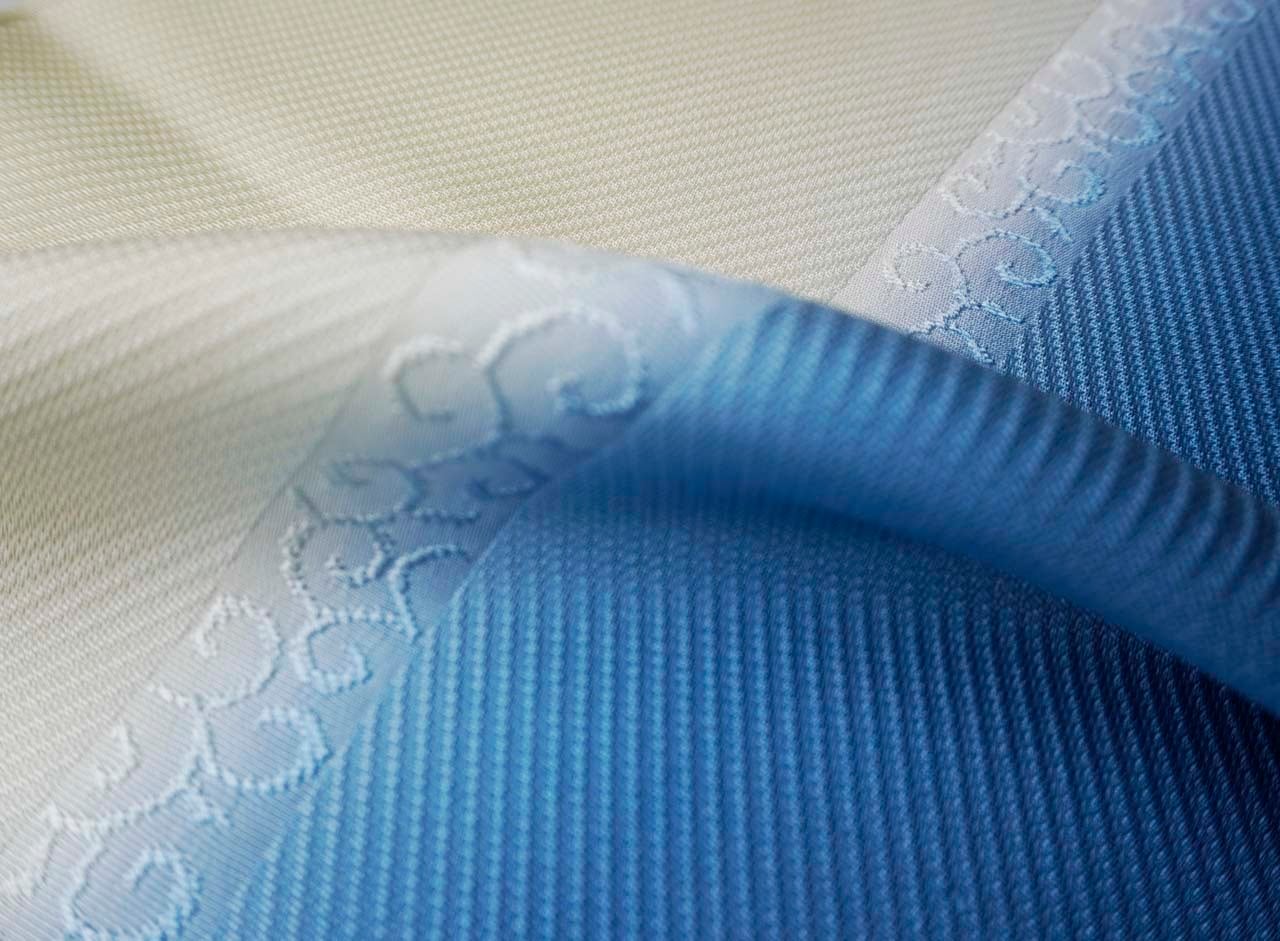 2枚の布を織り合わせる二重織りの技法(風通織)を用い、