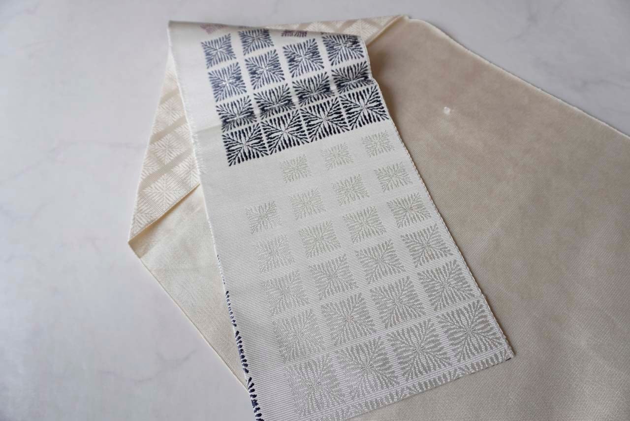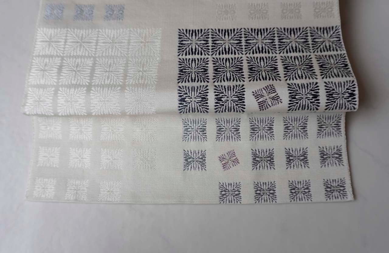 織り出された八寸名古屋帯です。