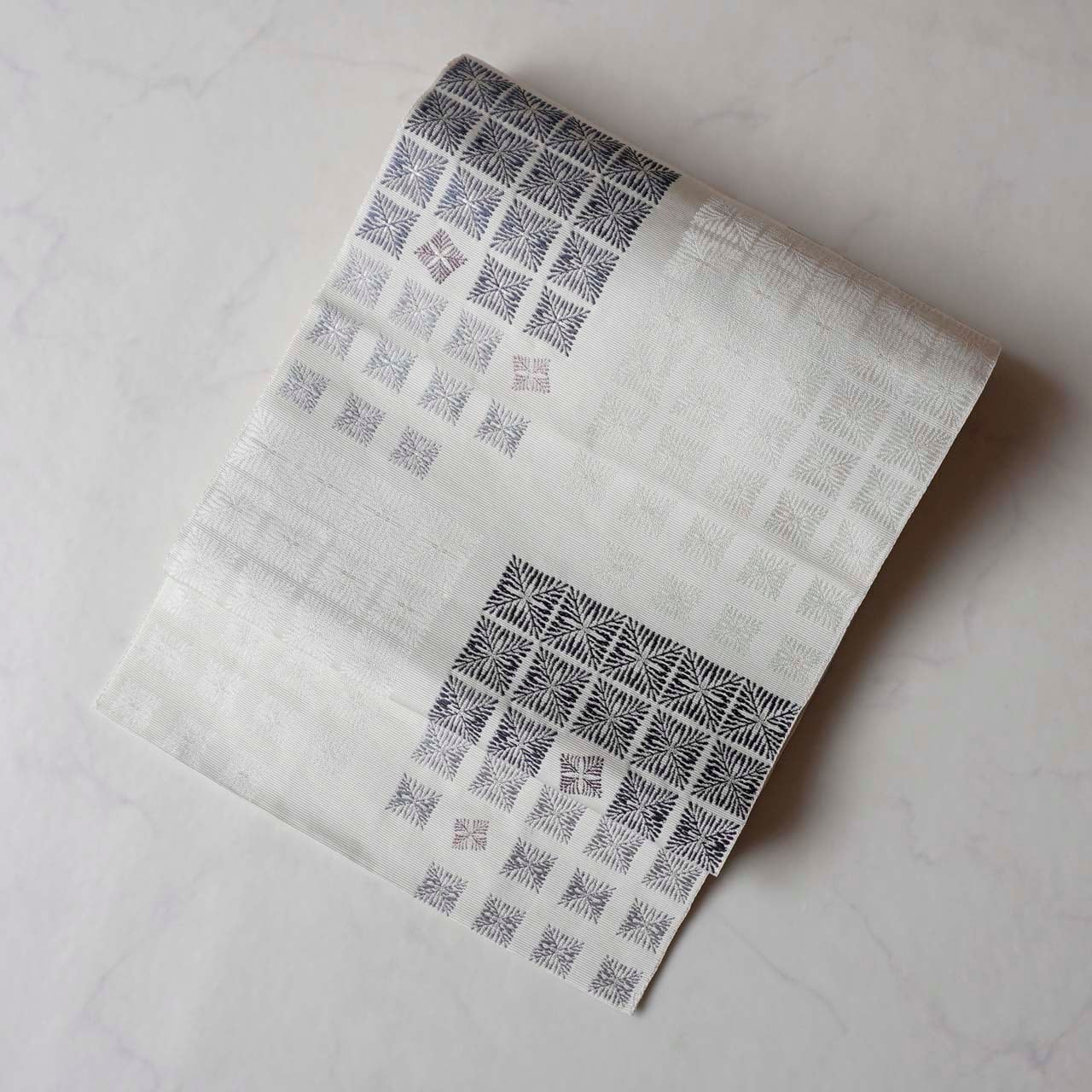 松菱文を丁寧に織り上げています。