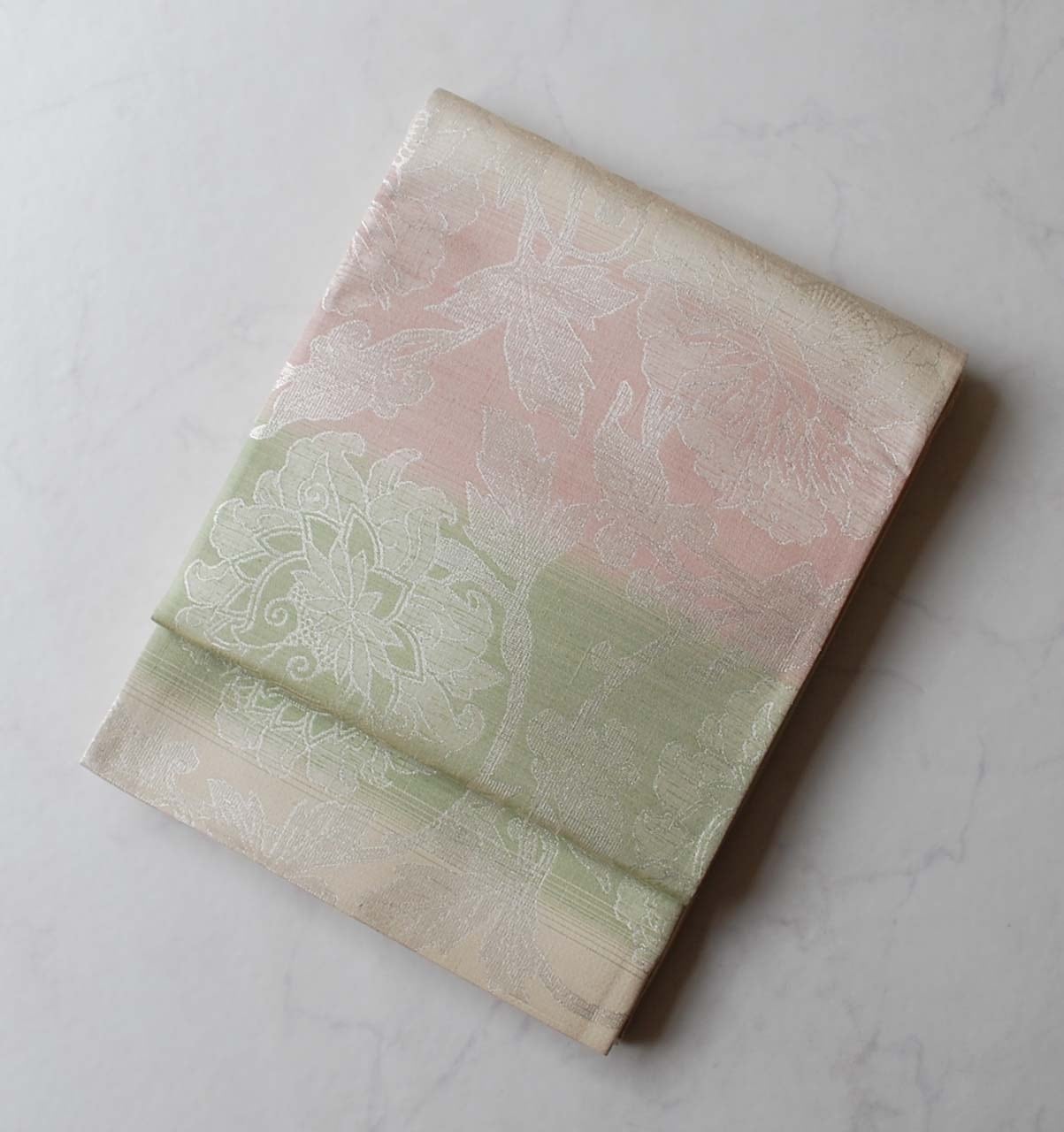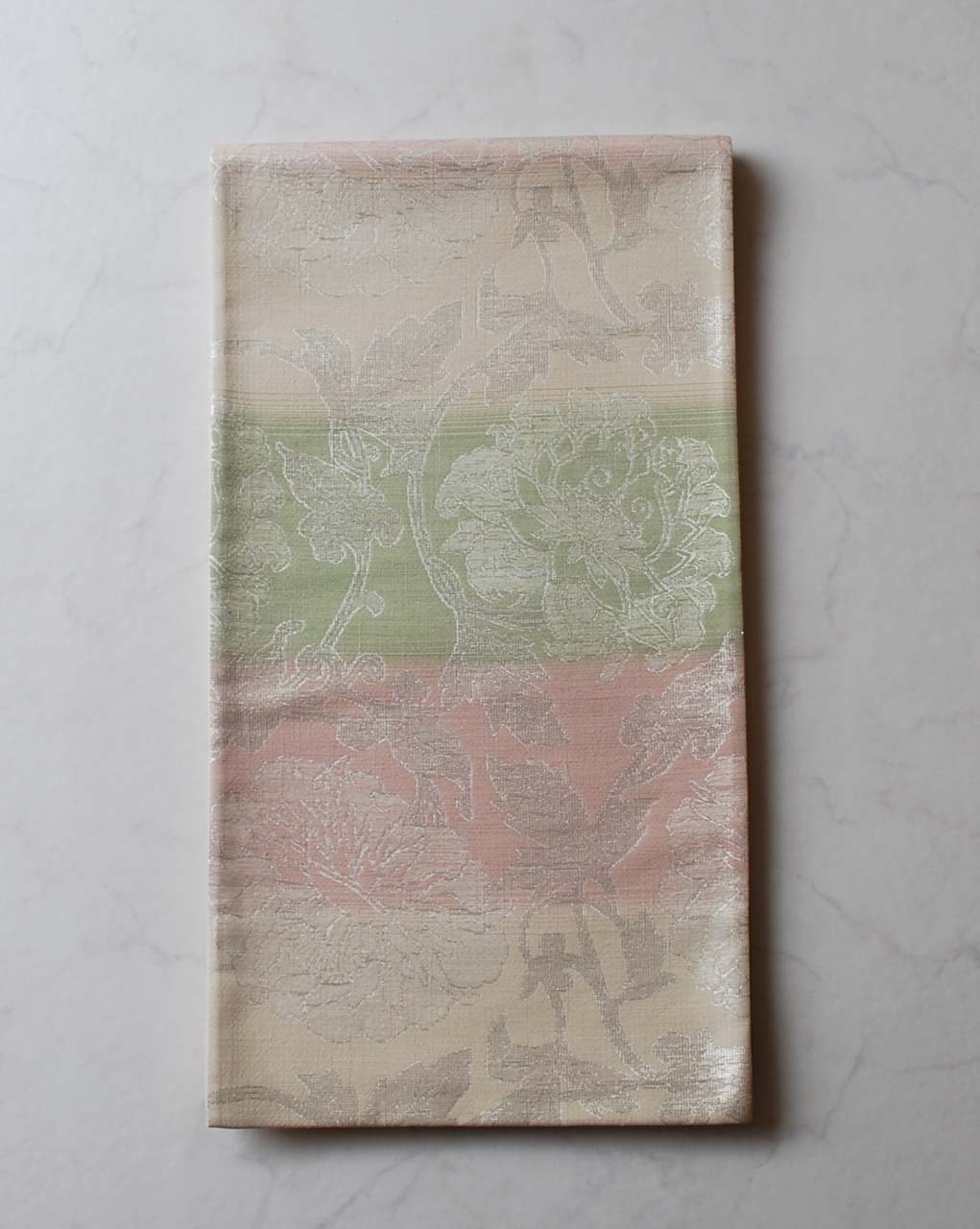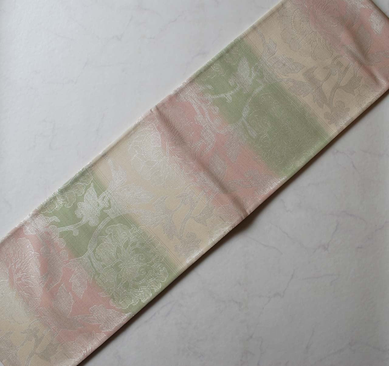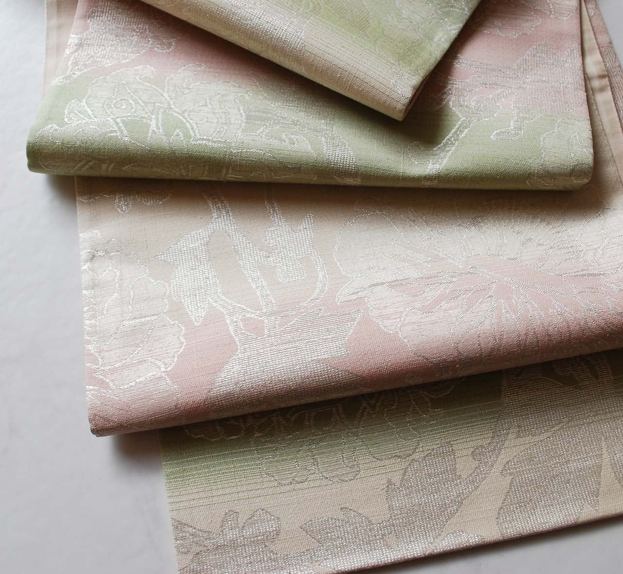 【ふくろ帯】桜色×若菜色 更紗文様 ふくろ帯 全通 長尺