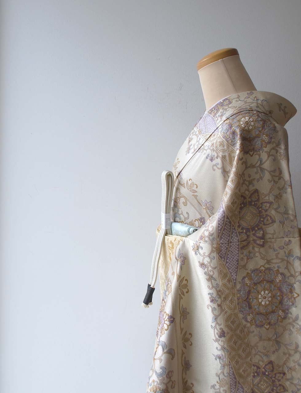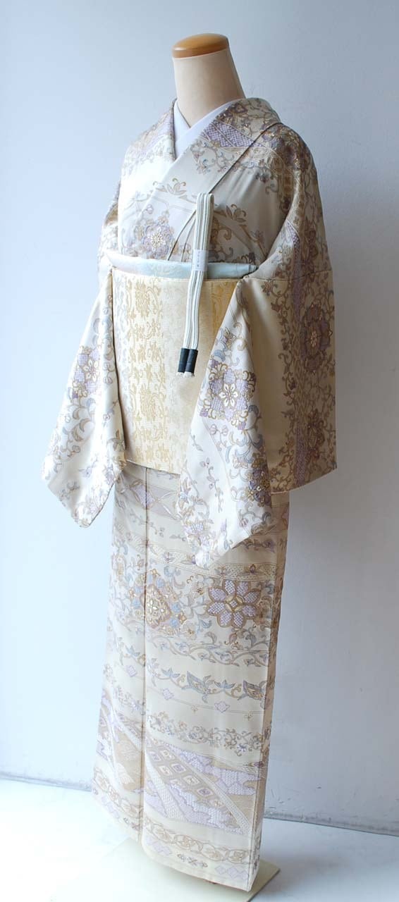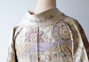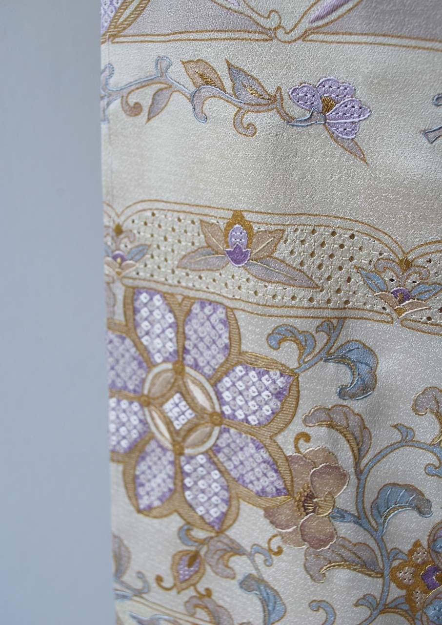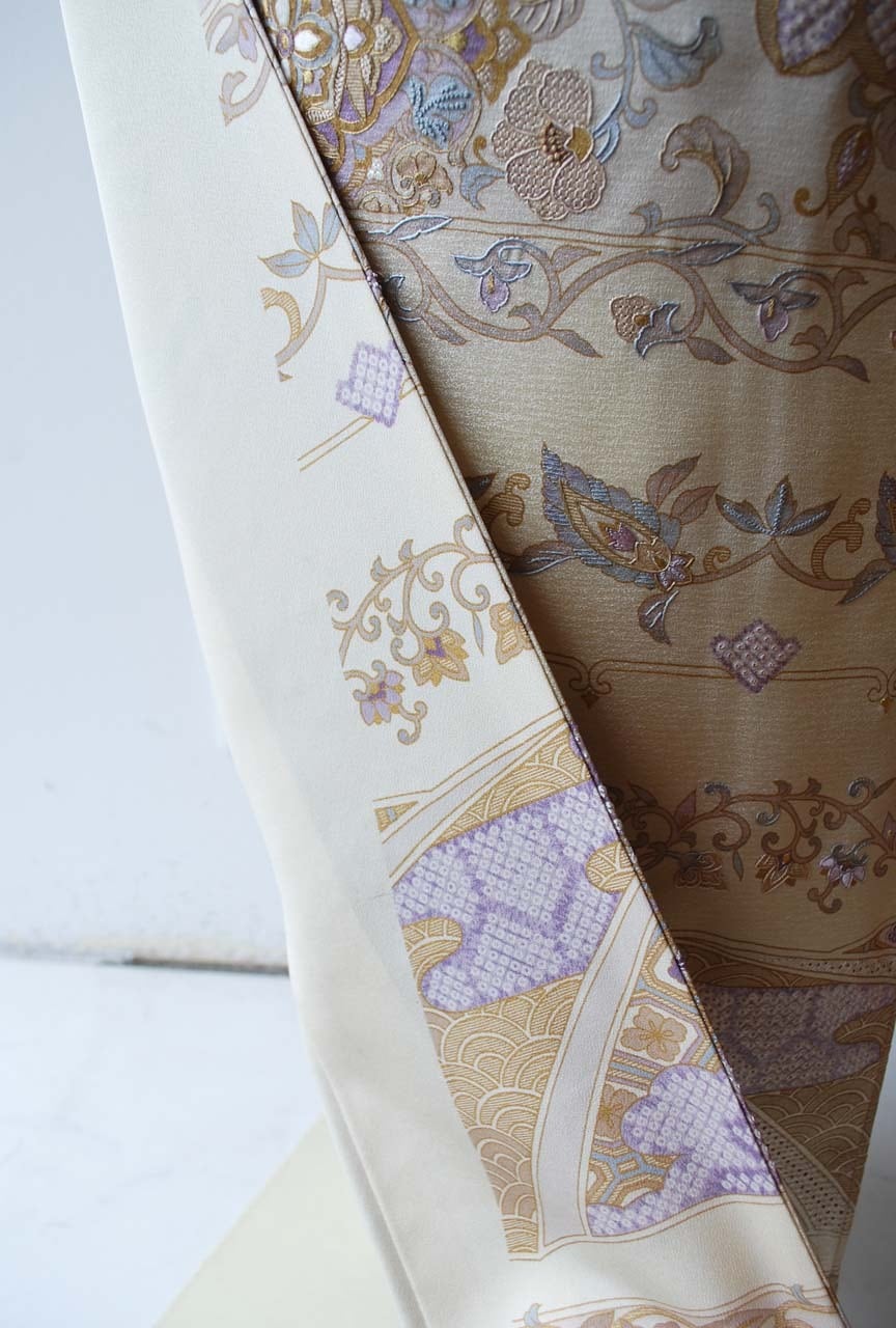 【袷】練色 段更紗刺繍文 訪問着