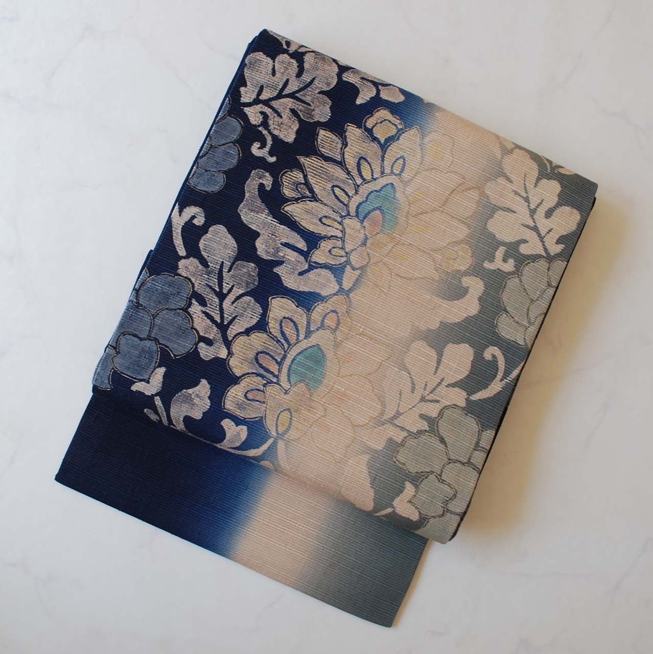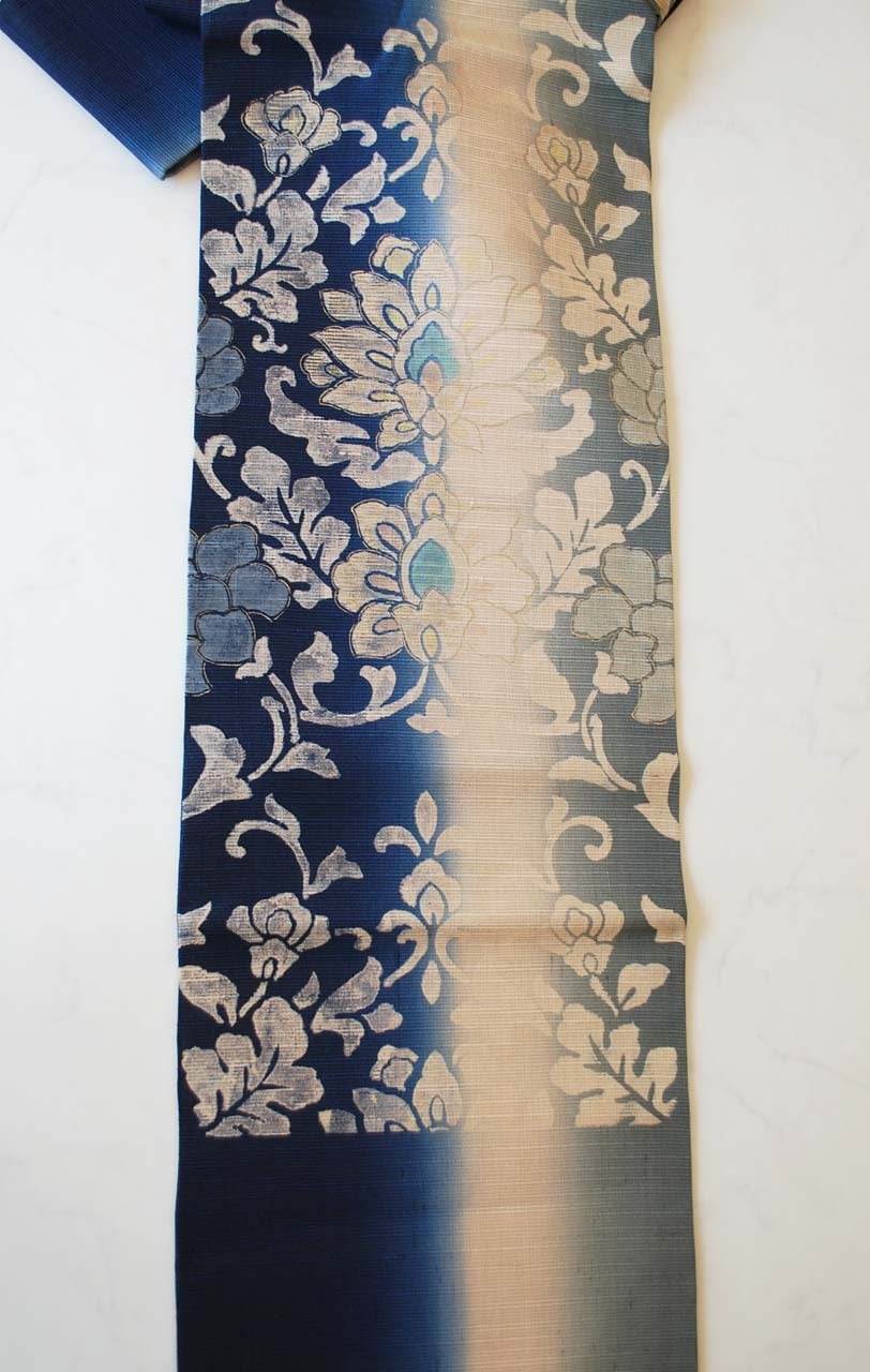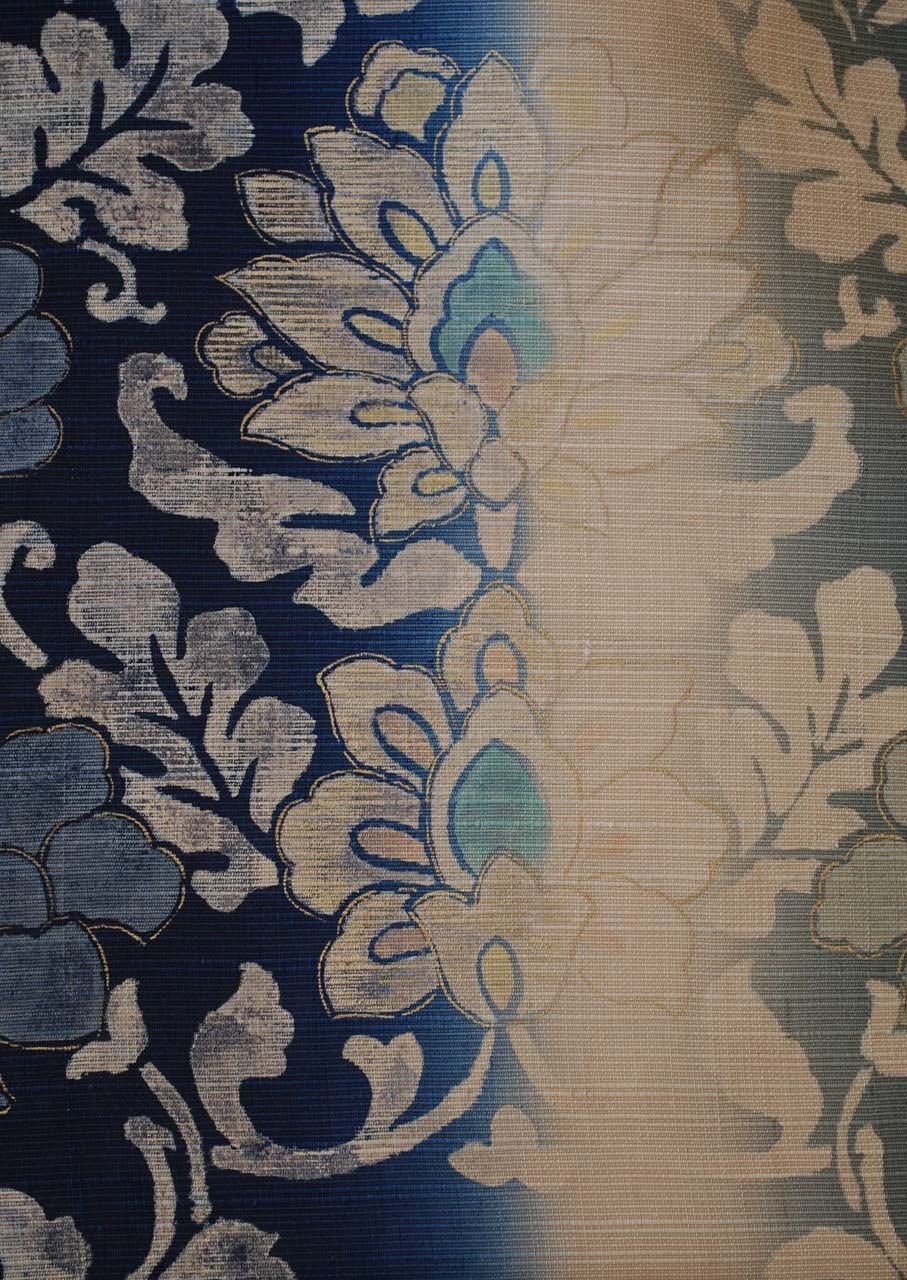 濃藍色暈かしに更紗文の